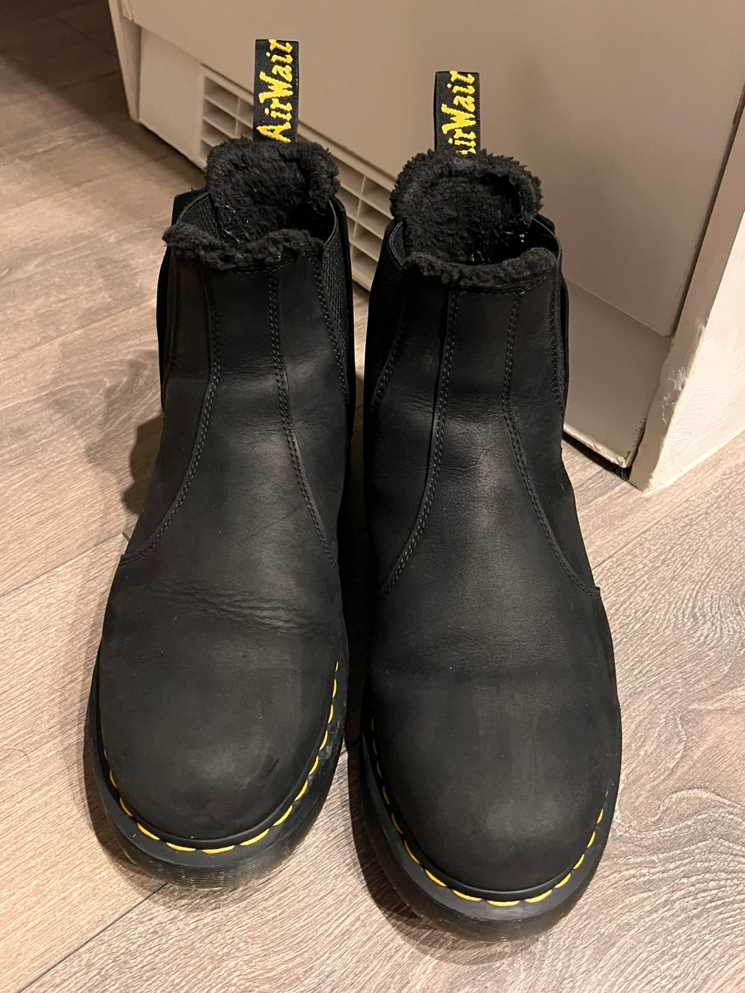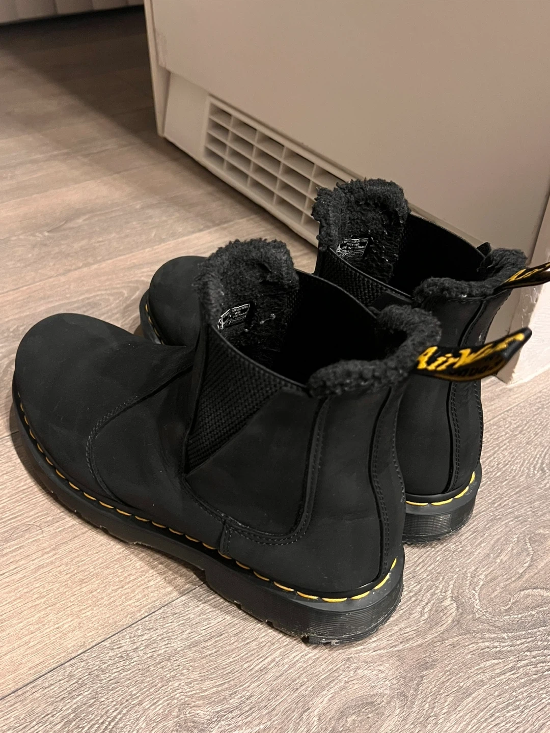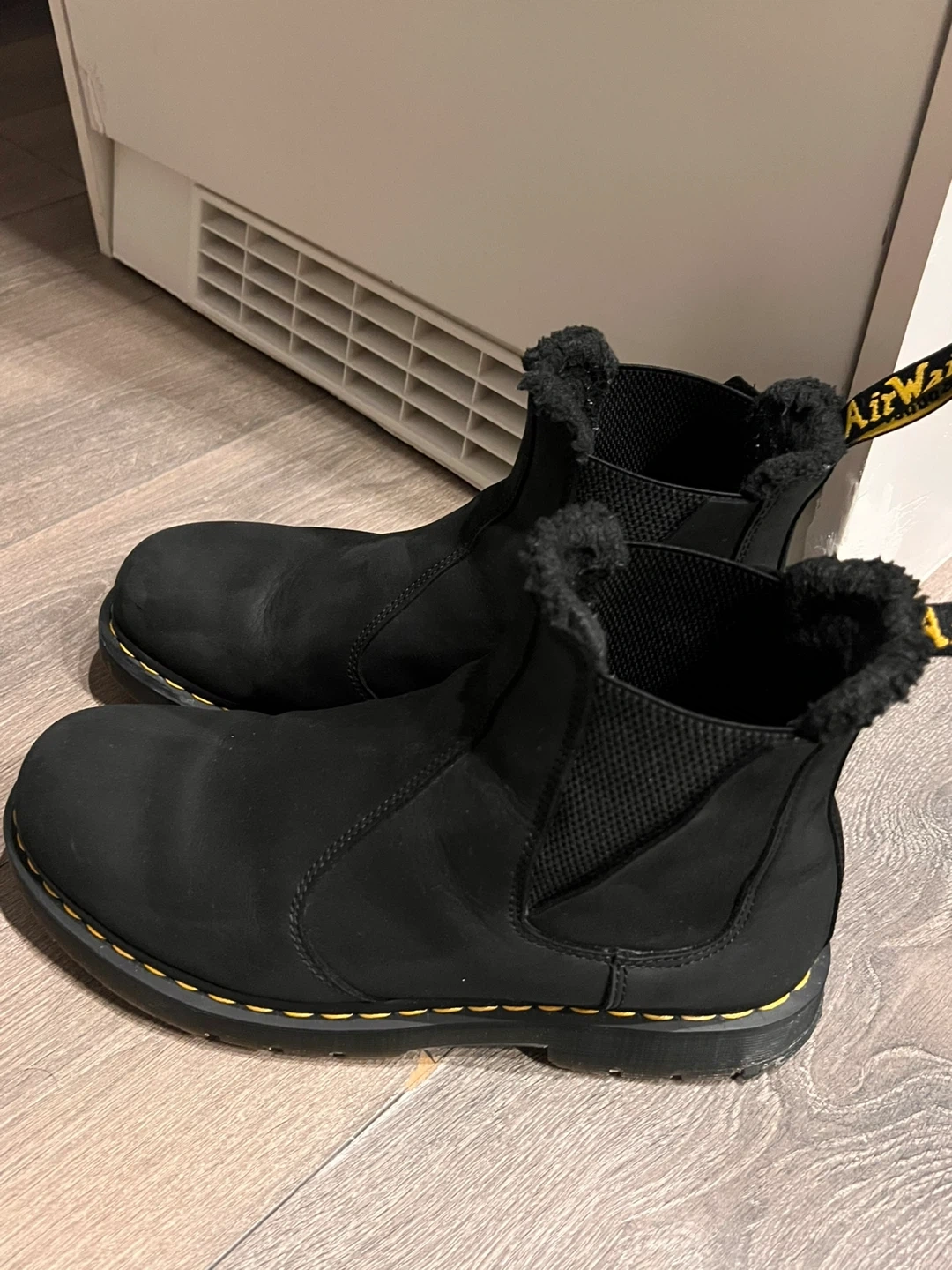 Selling a pair of Dr. Martens 2976 Winter Grip Chelsea boots in black. These are a US size 12 and have a warm, furry lining, perfect for the colder months! They're in great condition and ready for a new owner.