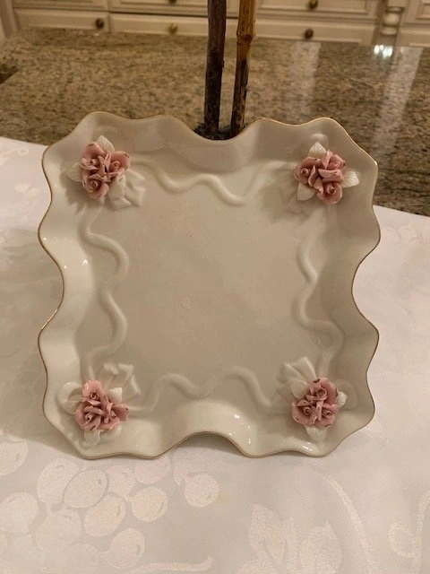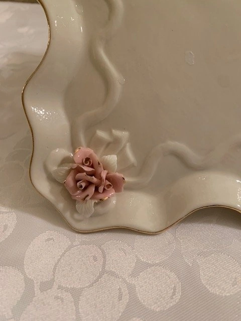 Delicate Pink Raised Miniature Roses Scalloped Wavy Edge - 10K Gold Trim