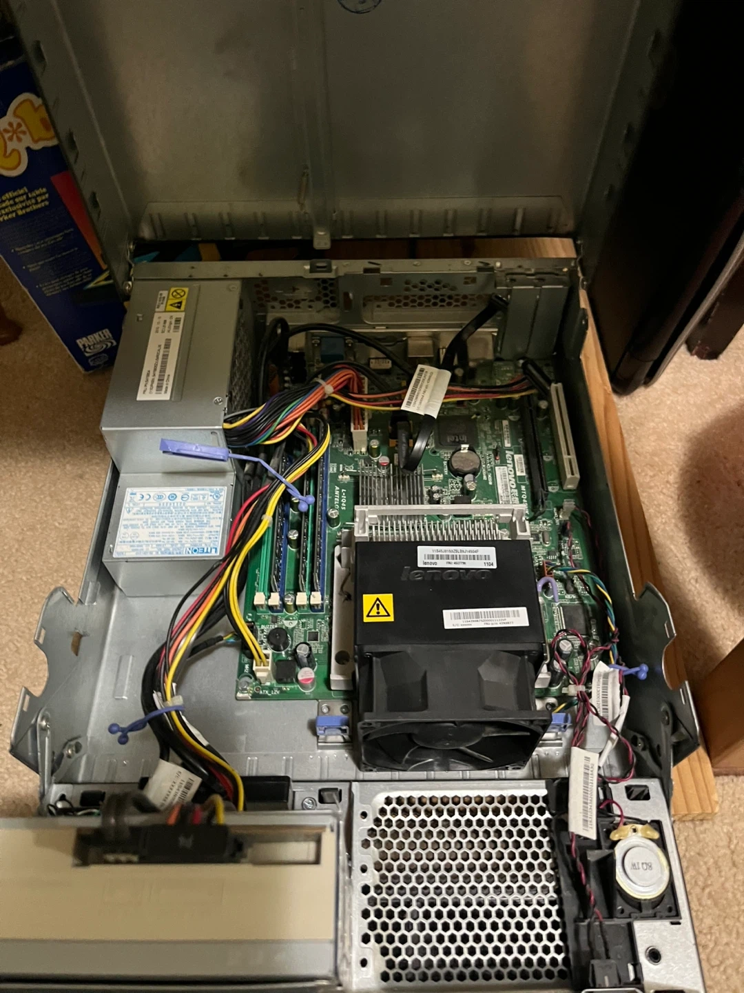 Selling a Lenovo ThinkCentre desktop PC. It has some signs of wear on the front, but is otherwise in good condition. Perfect for basic computing tasks!