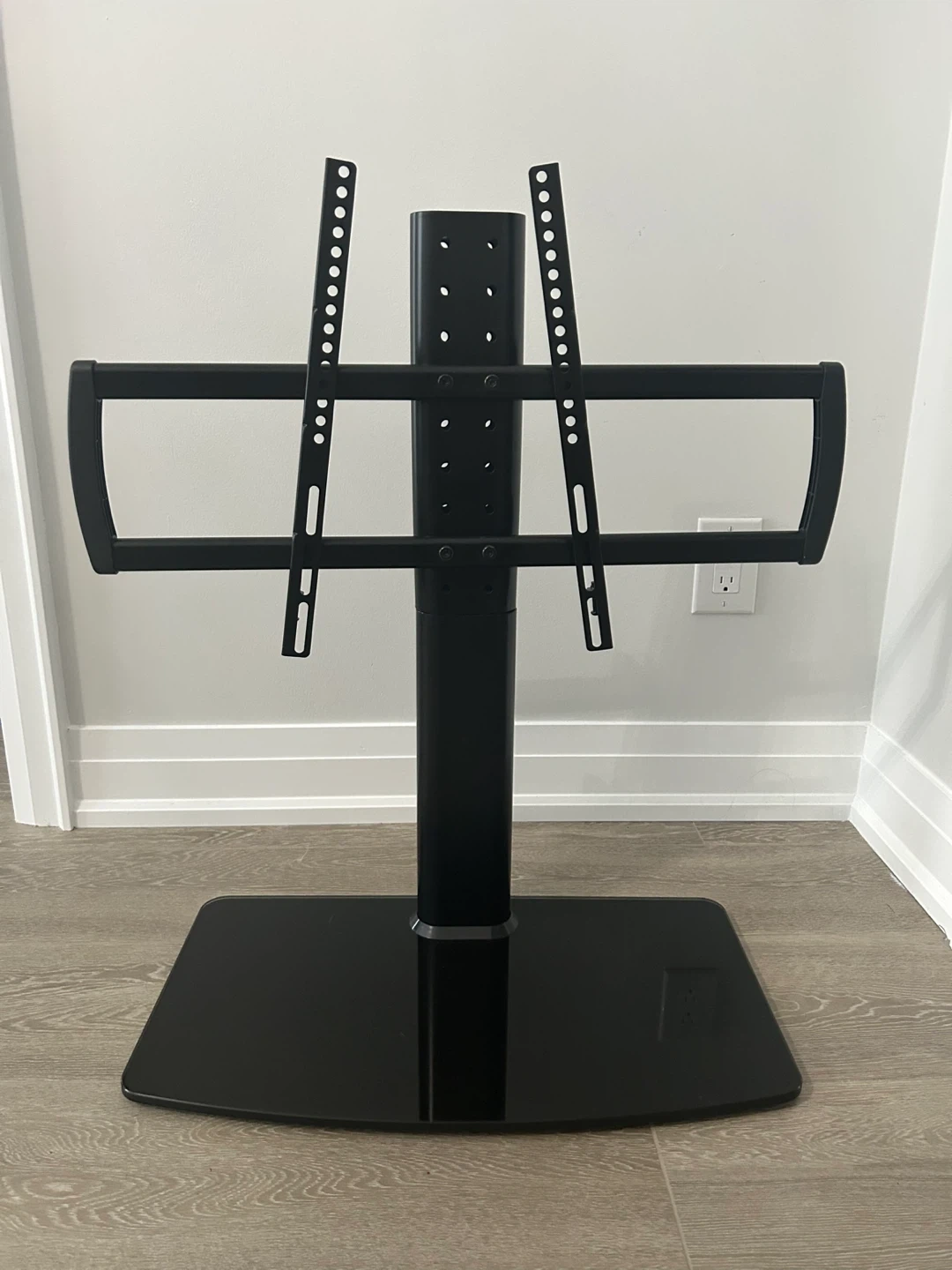 Selling a universal swivel TV stand in black. It's in great condition and ready to mount your TV.
