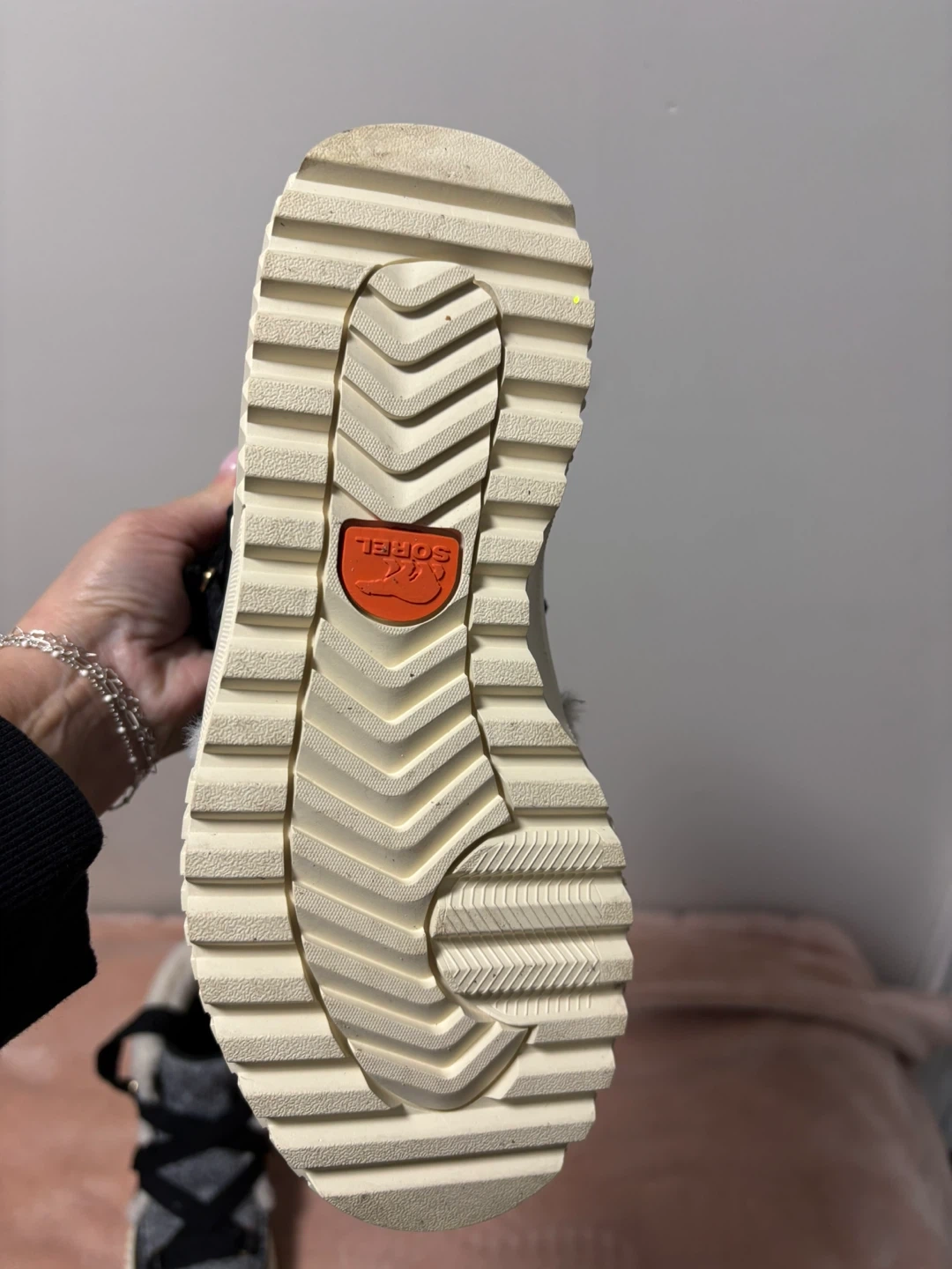 Cozy Sorel Explorer Ona Ave boots in size 5.5. These are in perfect condition and ready for the cold weather! They feature a black and grey design with faux fur trim and black laces. Perfect for staying warm and stylish this winter