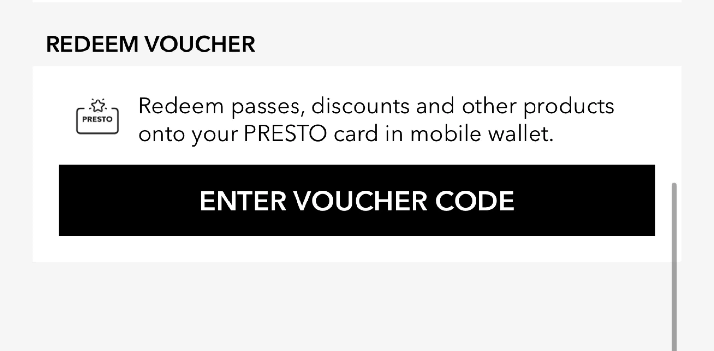 Buy & SellPresto Voucher(4 months) - Redeem passes, discountsPresto Voucher(4 months) - Redeem passes, discounts$180Get a Miway coupon that's four months cheaper! Offer ends April 30th!😌WHERE TO MEET349 Rathburn Rd WView MapSELLERChloeMilliken150 reviews2 chats·0 favorites·24 viewsSEND CHAT TO SELLERHi Chloe! I’m interested in your listing.Hi Chloe! I’m interested in your listing.Get the Karrot app to chatSign In to chat