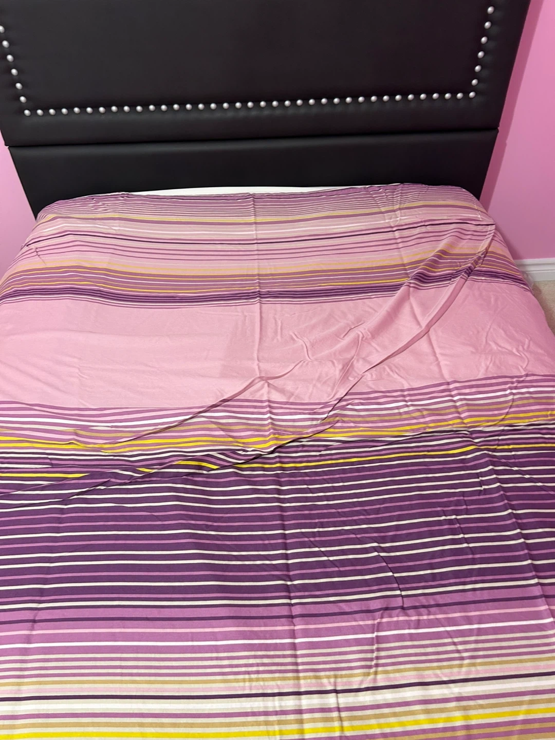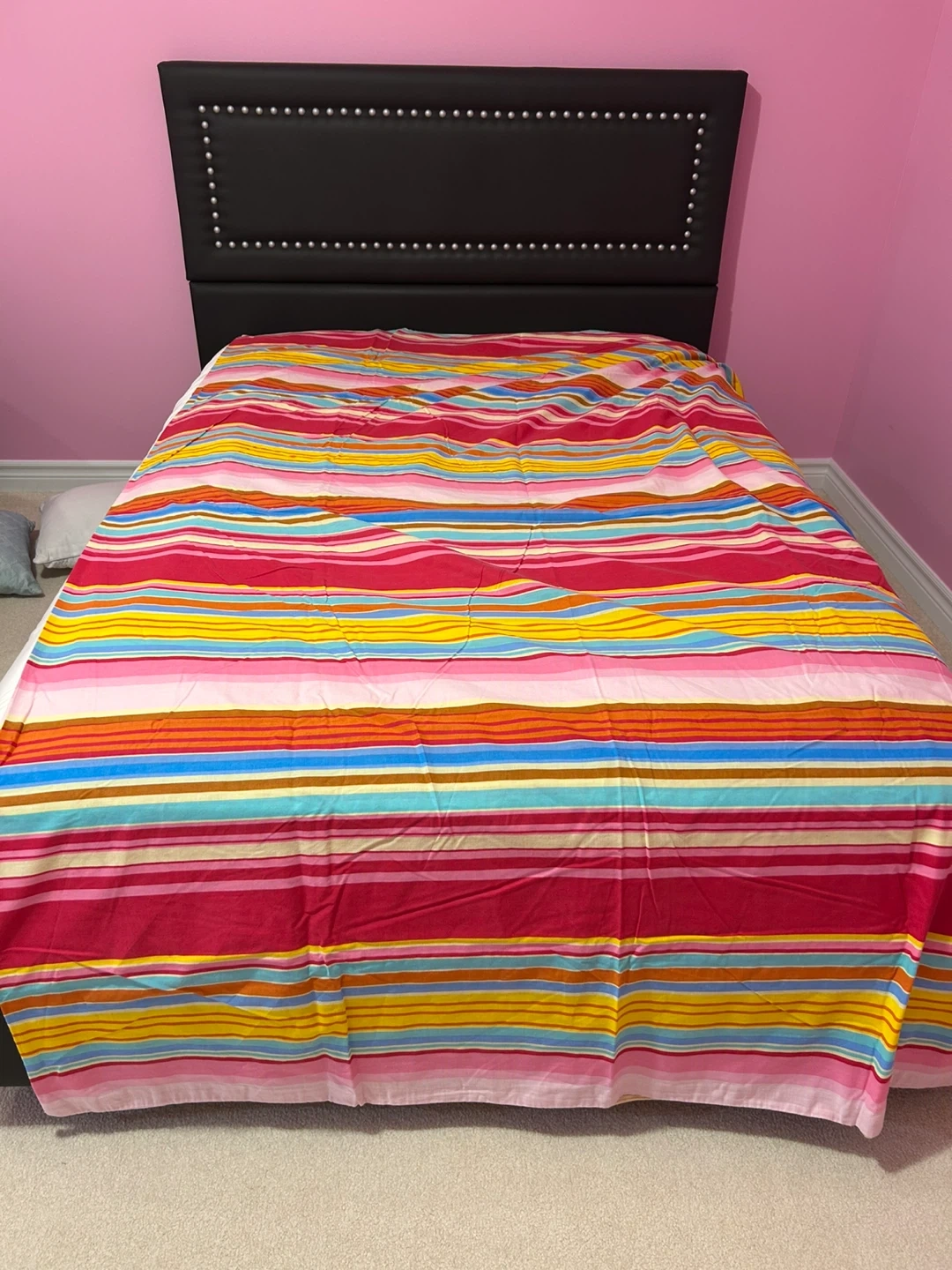 Selling a colourful striped bedding set! It's in great condition and would be an addition to any bedroom.