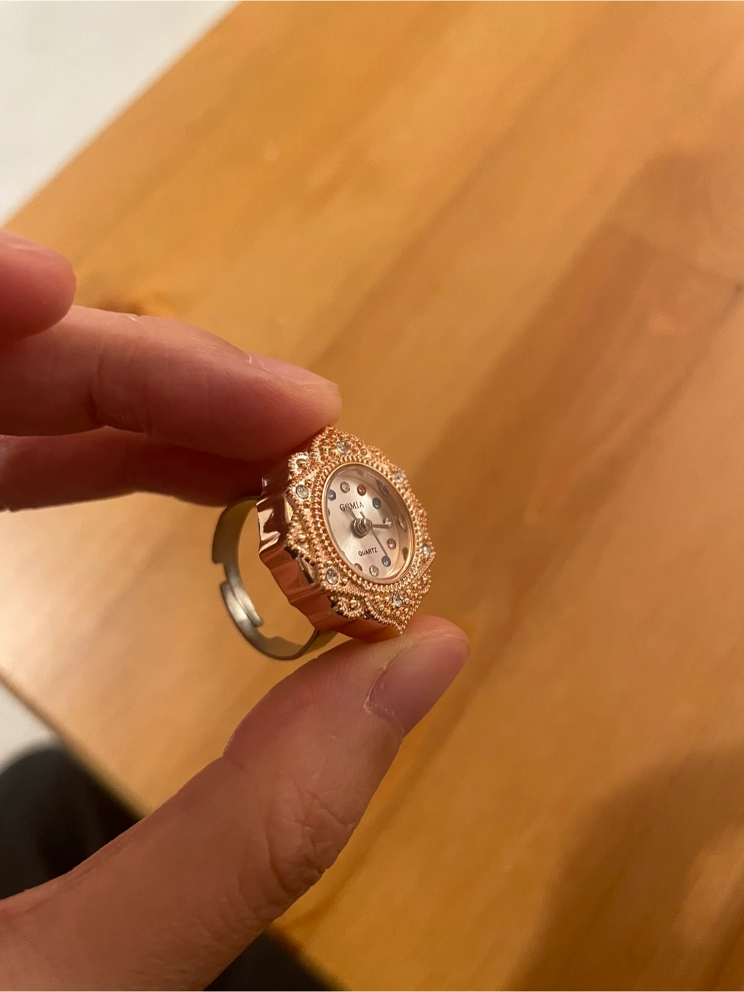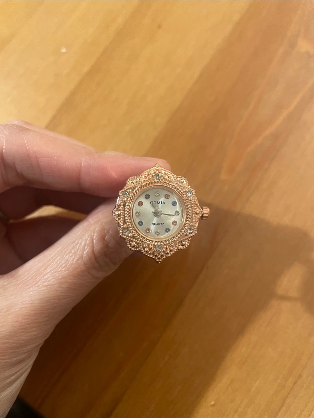 Selling a cute Gomia quartz ring watch! It's rose gold in colour and features a quartz movement. It's a stylish and unique accessory to add to your collection