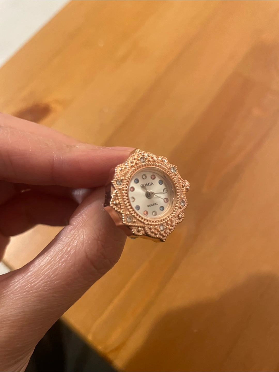 Selling a cute Gomia quartz ring watch! It's rose gold in colour and features a quartz movement. It's a stylish and unique accessory to add to your collection
