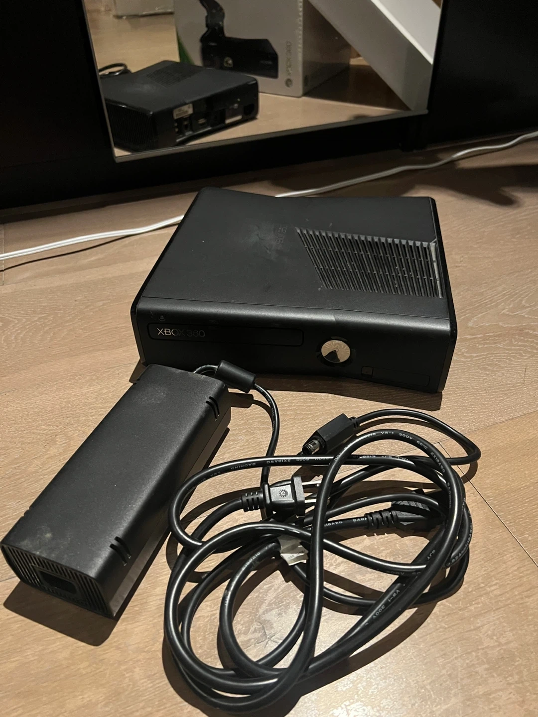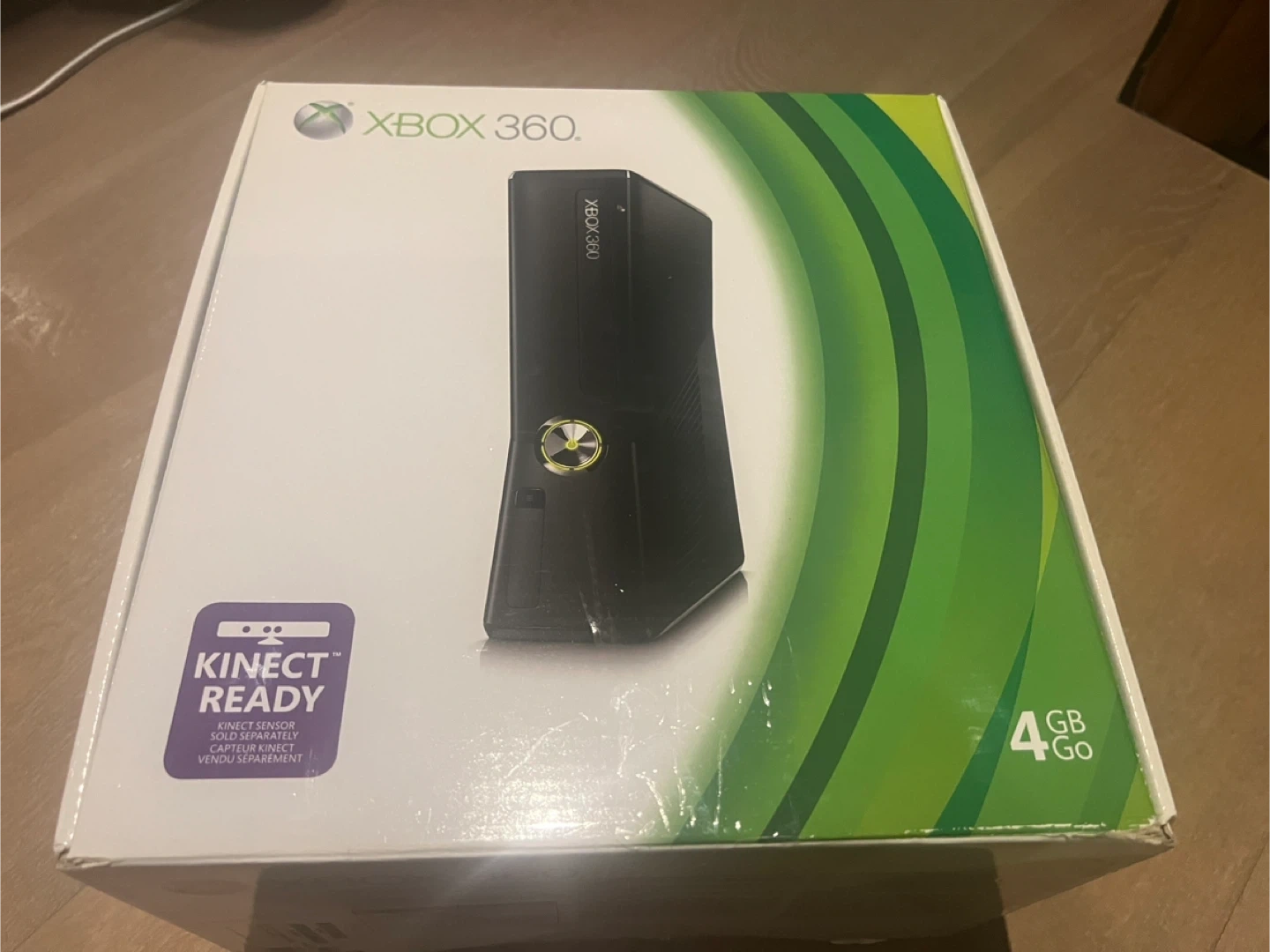 Selling a 4GB black Xbox 360 console. Includes two controllers, the power adapter, all cables in original box with manuals!