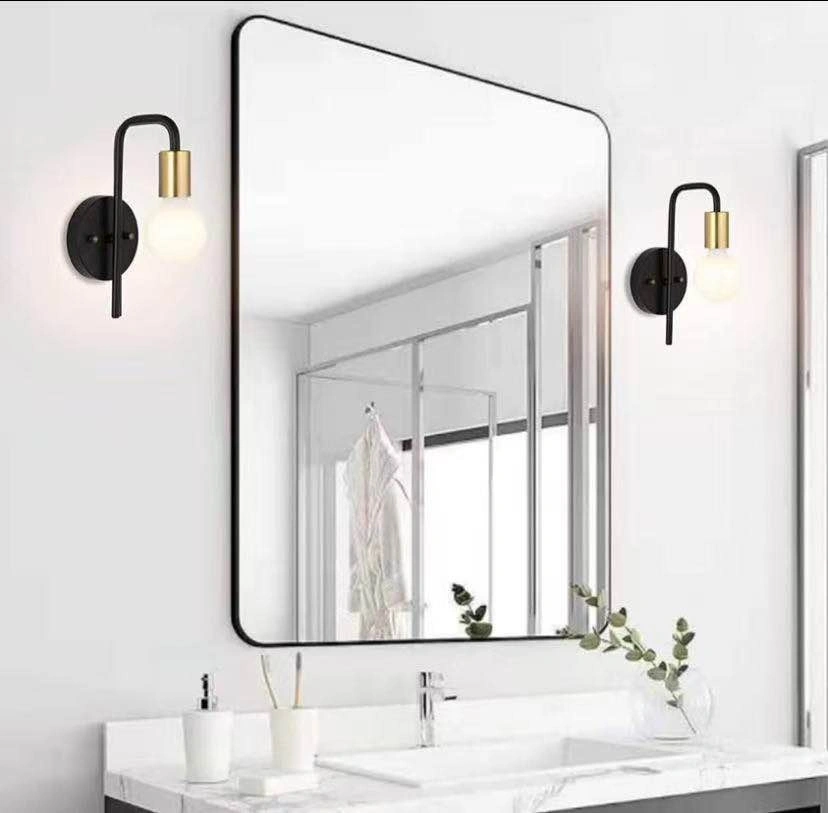 2 Pack Bathroom Wall Sconces, Contemporary Black & Gold Brass Vintage Vanity Light Fixtures Indoor Wall Lamp, Wall Mounted Lighting for Living Bedroom Kitchen Hallway Night Lights
