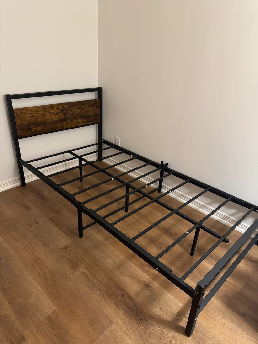 ⭐️ Twin Size Metal Bed Frame with Wooden Headboard ⭐️