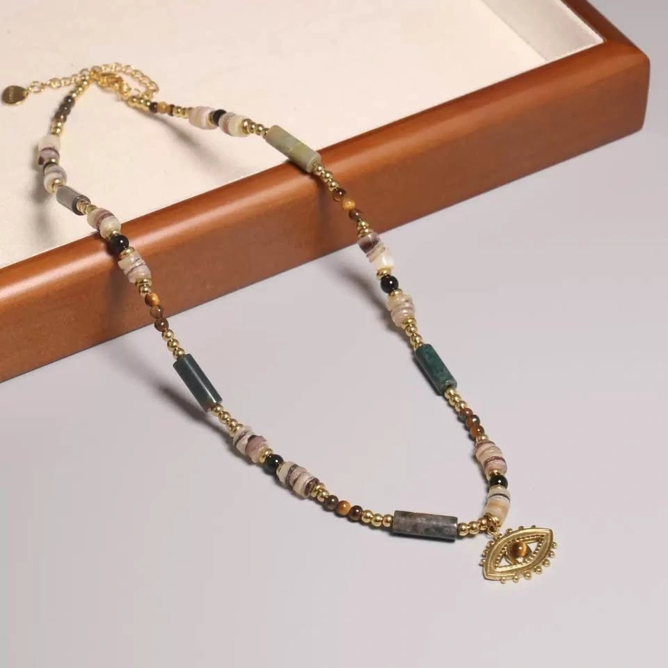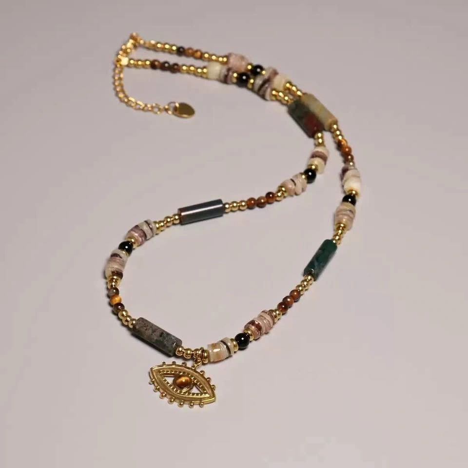 Moody Tiger’s Eye Beaded Necklace for Women, Fall & Winter Style