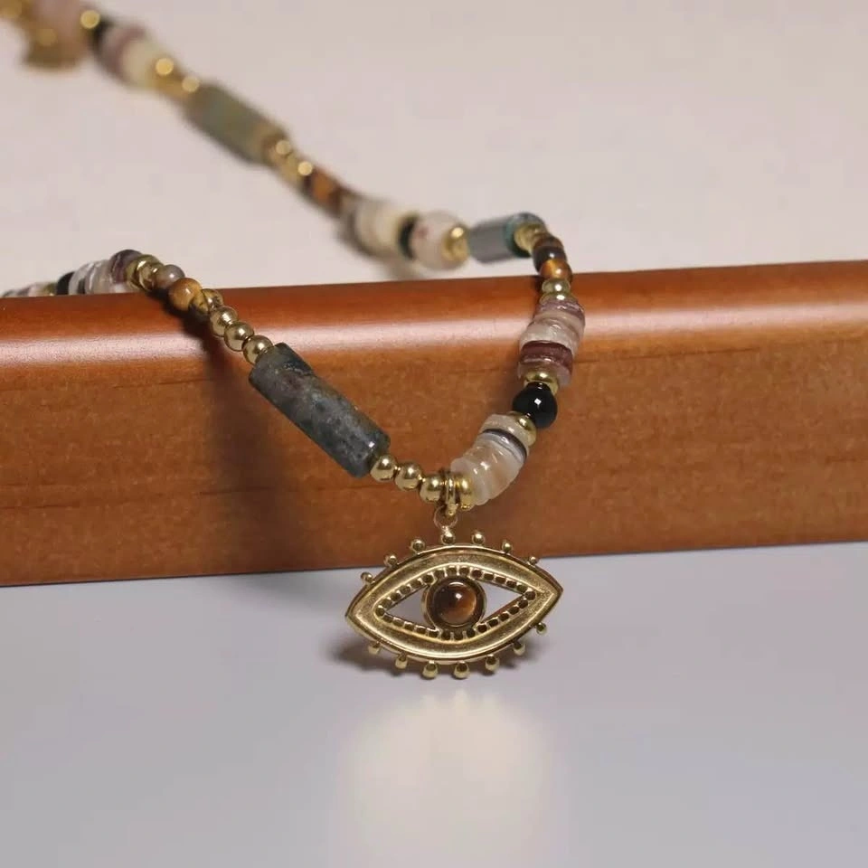 Moody Tiger’s Eye Beaded Necklace for Women, Fall & Winter Style
