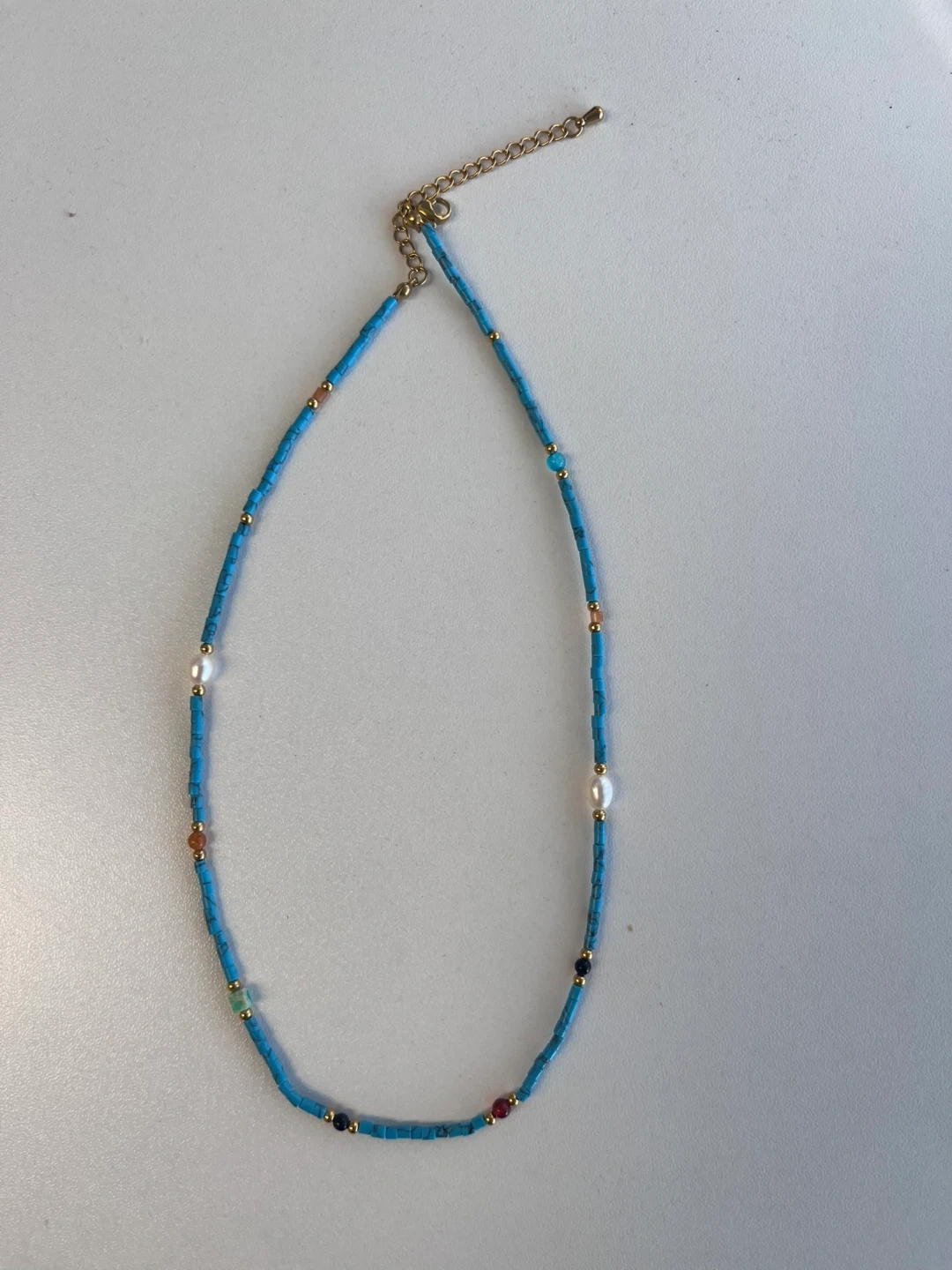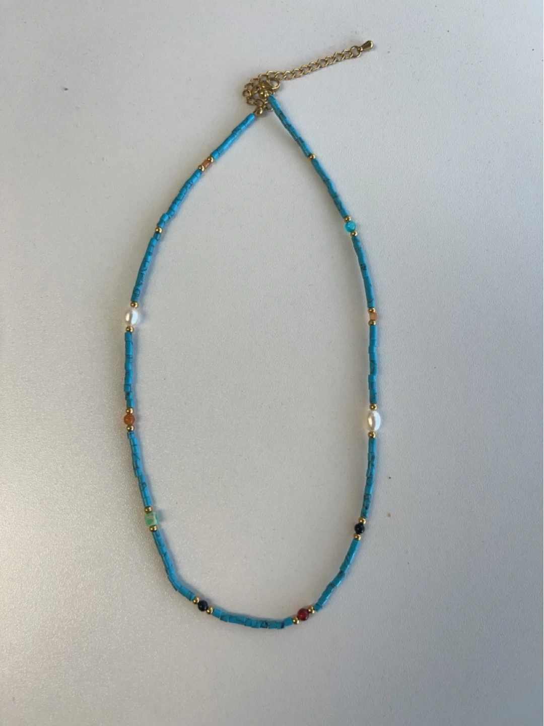 Handmade Natural Blue-Green Turquoise Beaded Necklace, good qual