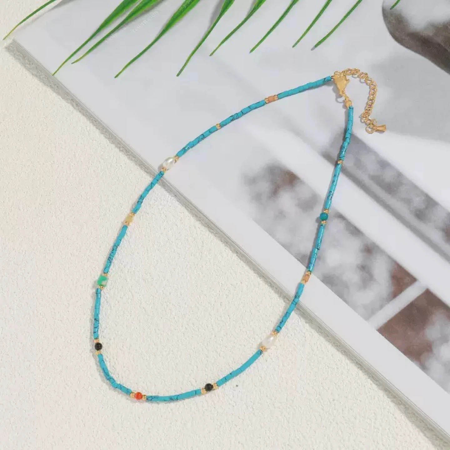 Handmade Natural Blue-Green Turquoise Beaded Necklace for Women (Clavicle Necklace)