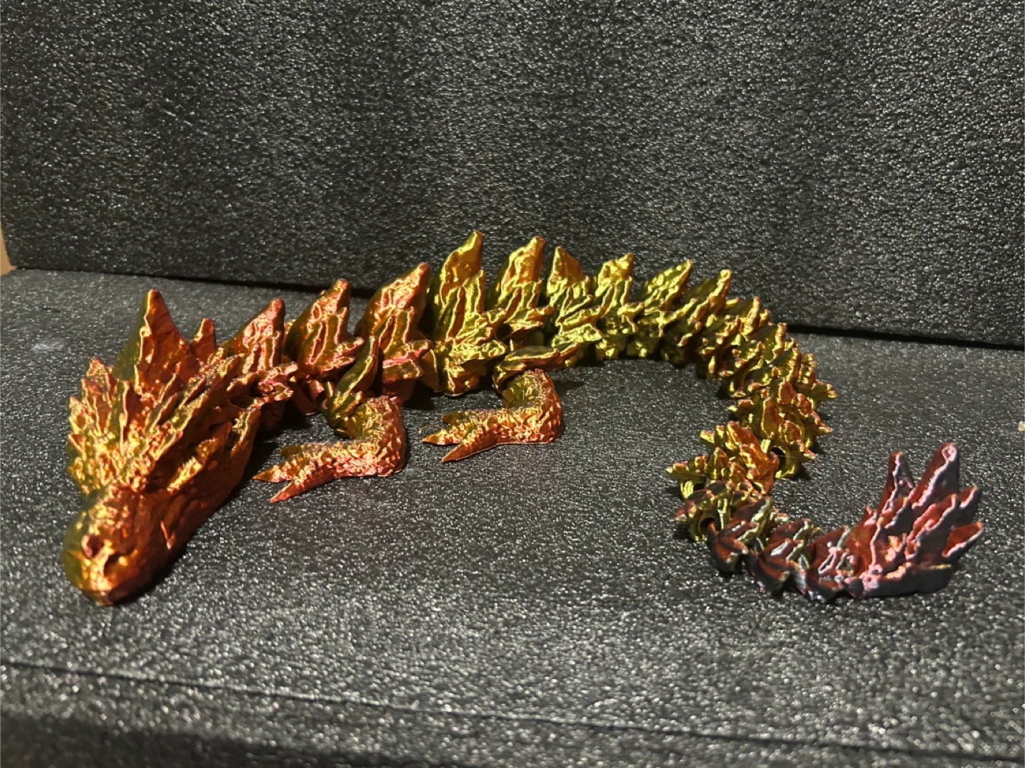 This is a cool 3D printed articulating dragon! It's very flexible and fun to play with. It's a great fidget toy or display piece