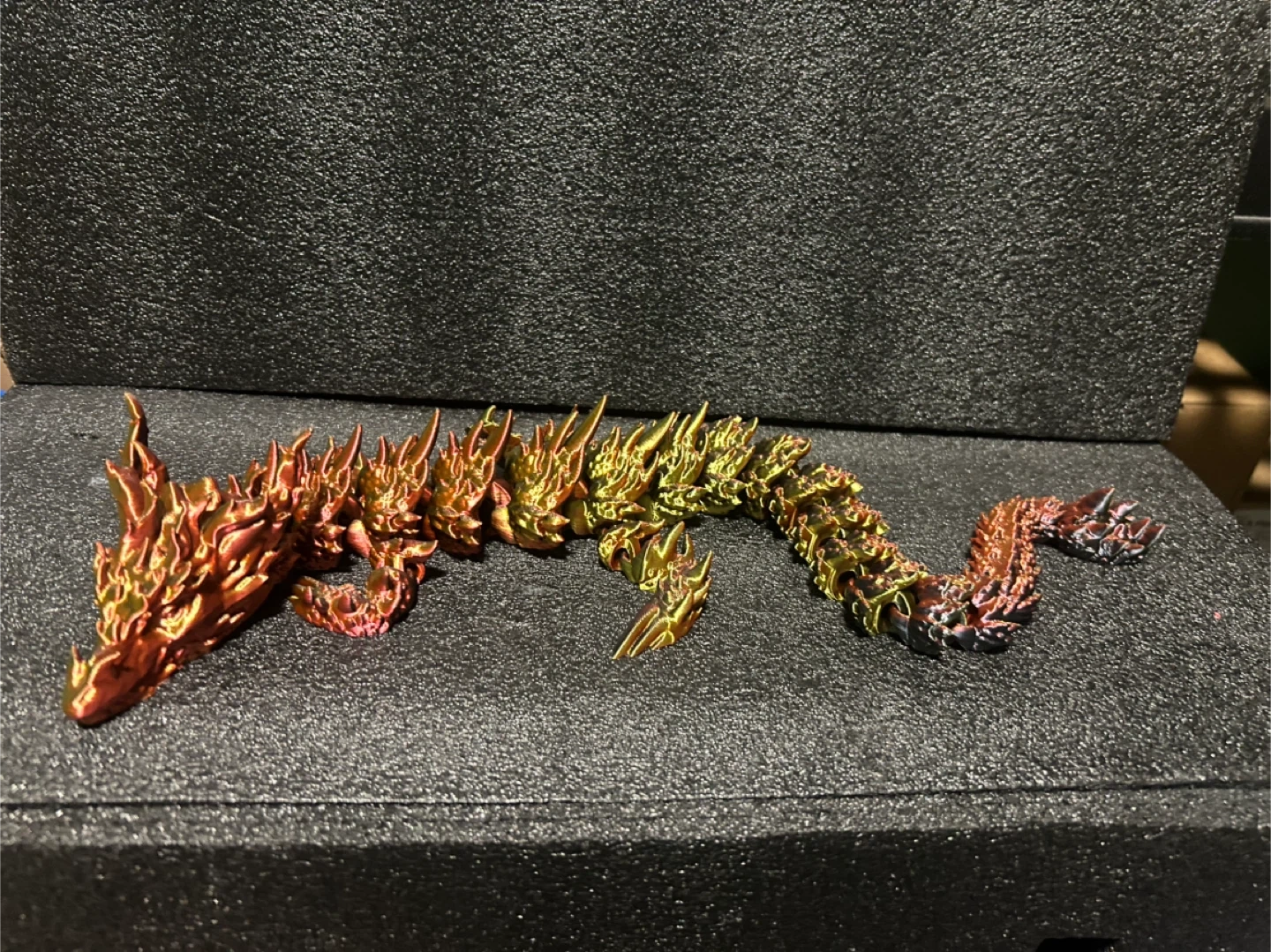 This is a cool 3D printed articulating dragon! It's very flexible and fun to play with. It's a great fidget toy or display piece