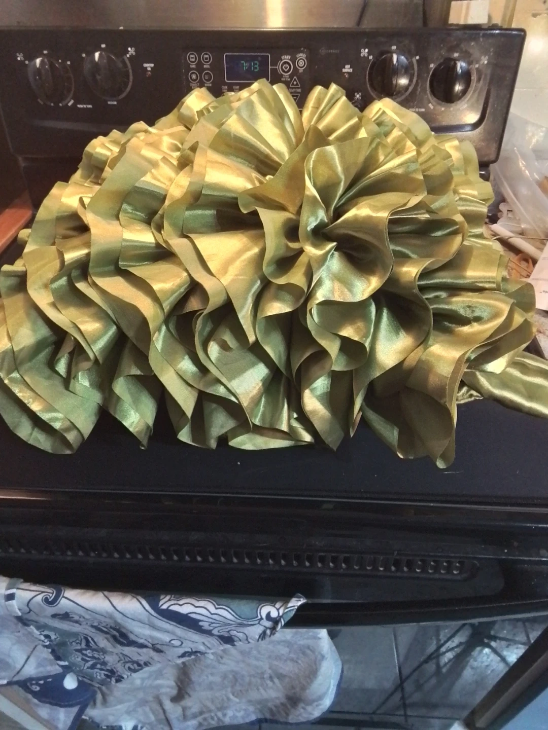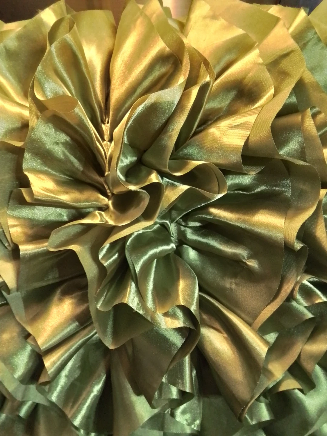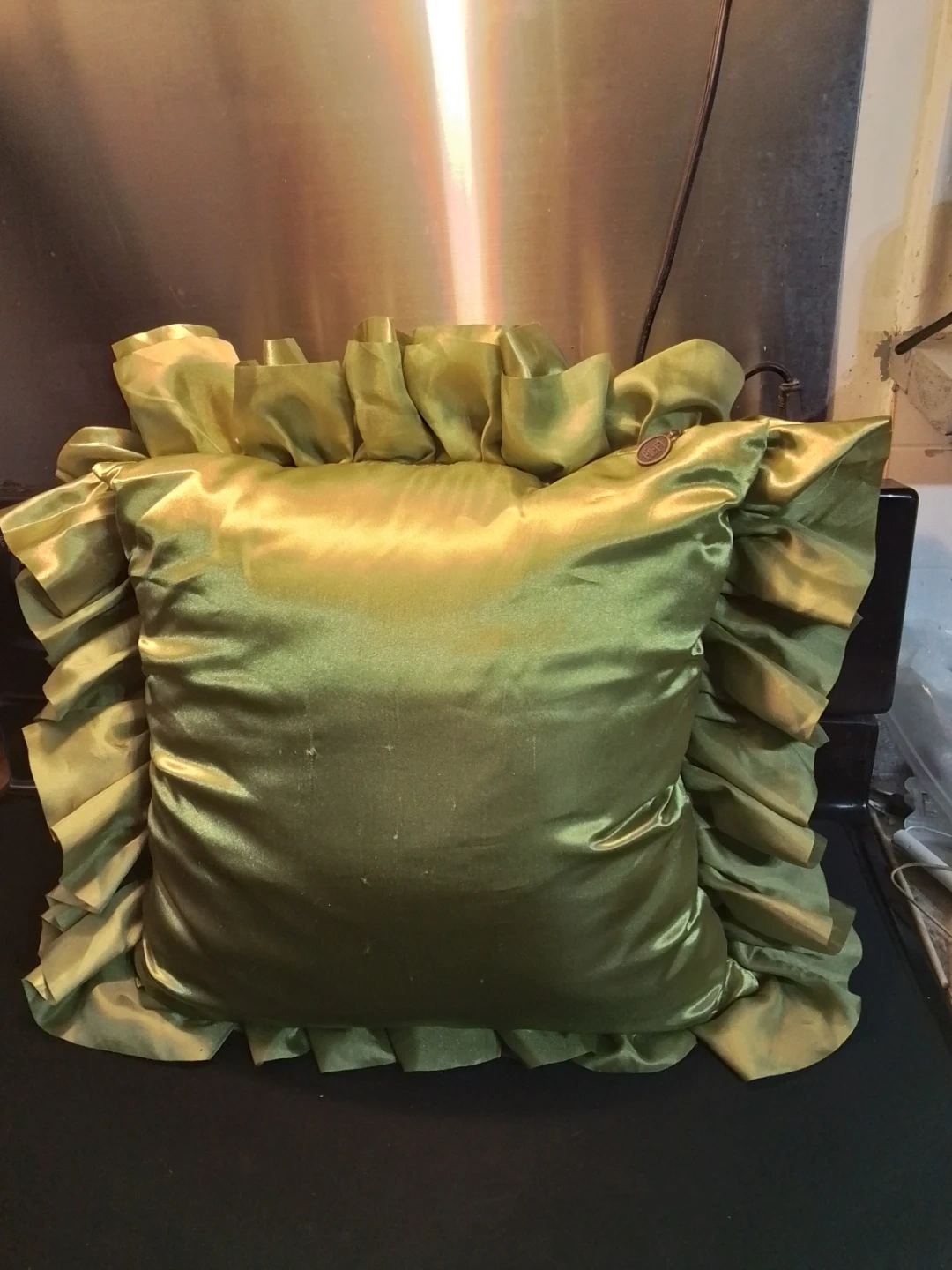 A beautiful decorative pillow with a unique ruffled design! The green colour adds a touch of elegance to any room. It's in great condition and ready to enhance your home decor
