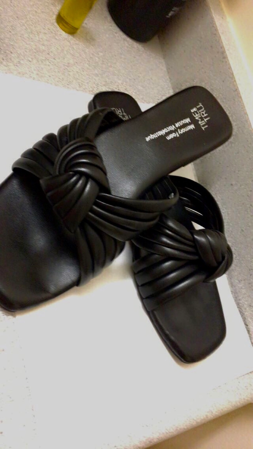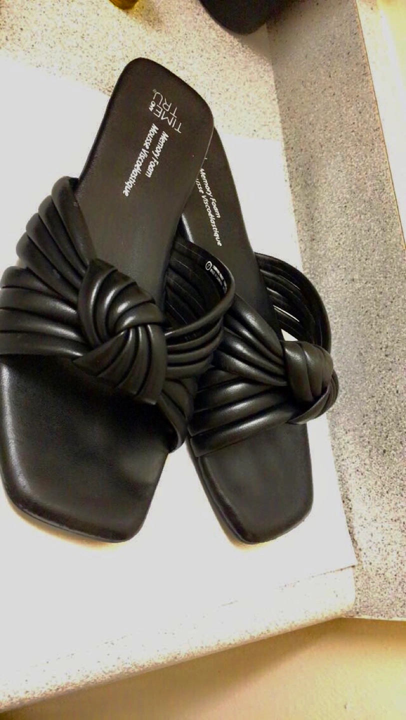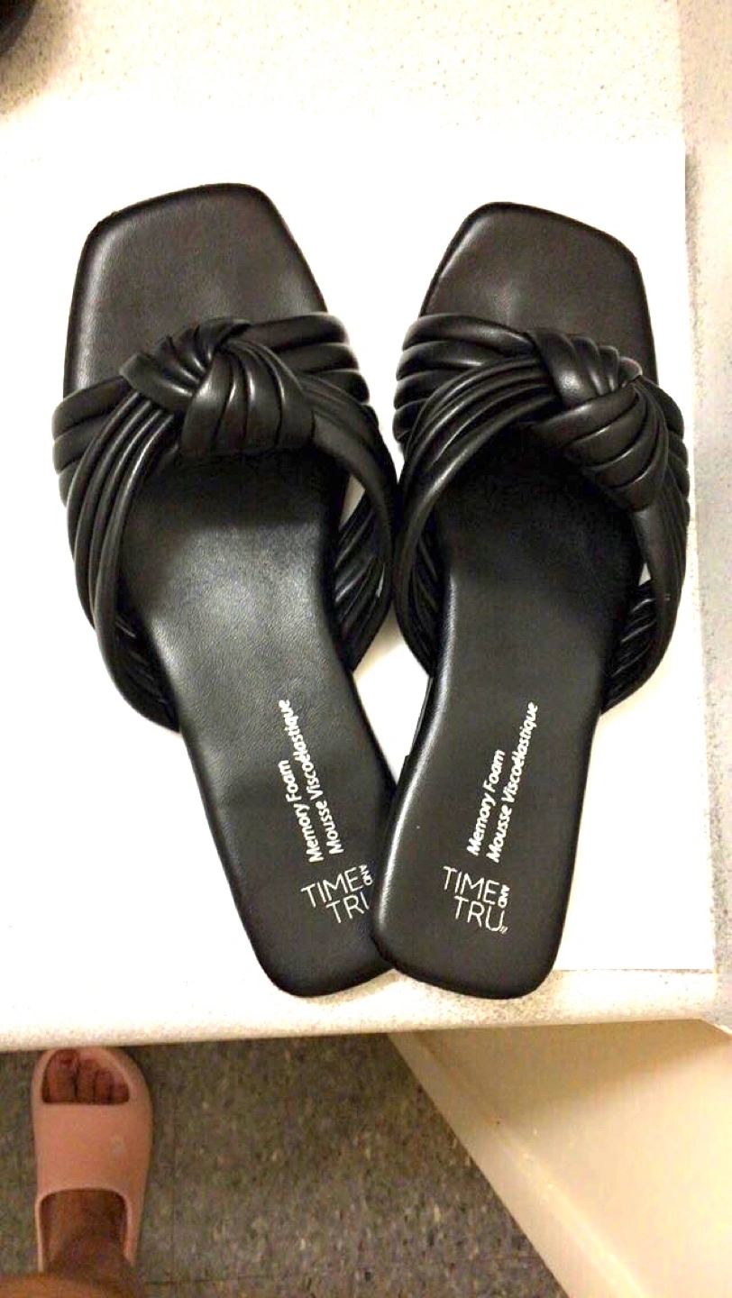 Selling a pair of Time and Tru sandals in size 7. They're black with a memory foam insole, super comfy for everyday wear!