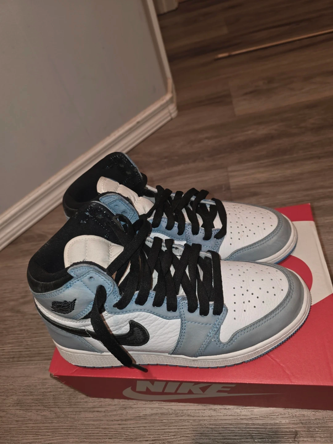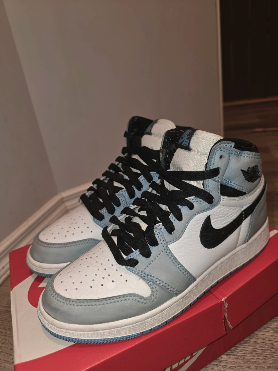 Selling a pair of Nike Air Jordan 1 Retro High in the University Blue colourway! They are in good condition and come with the original box. A classic pair of shoes that will go with any fit!