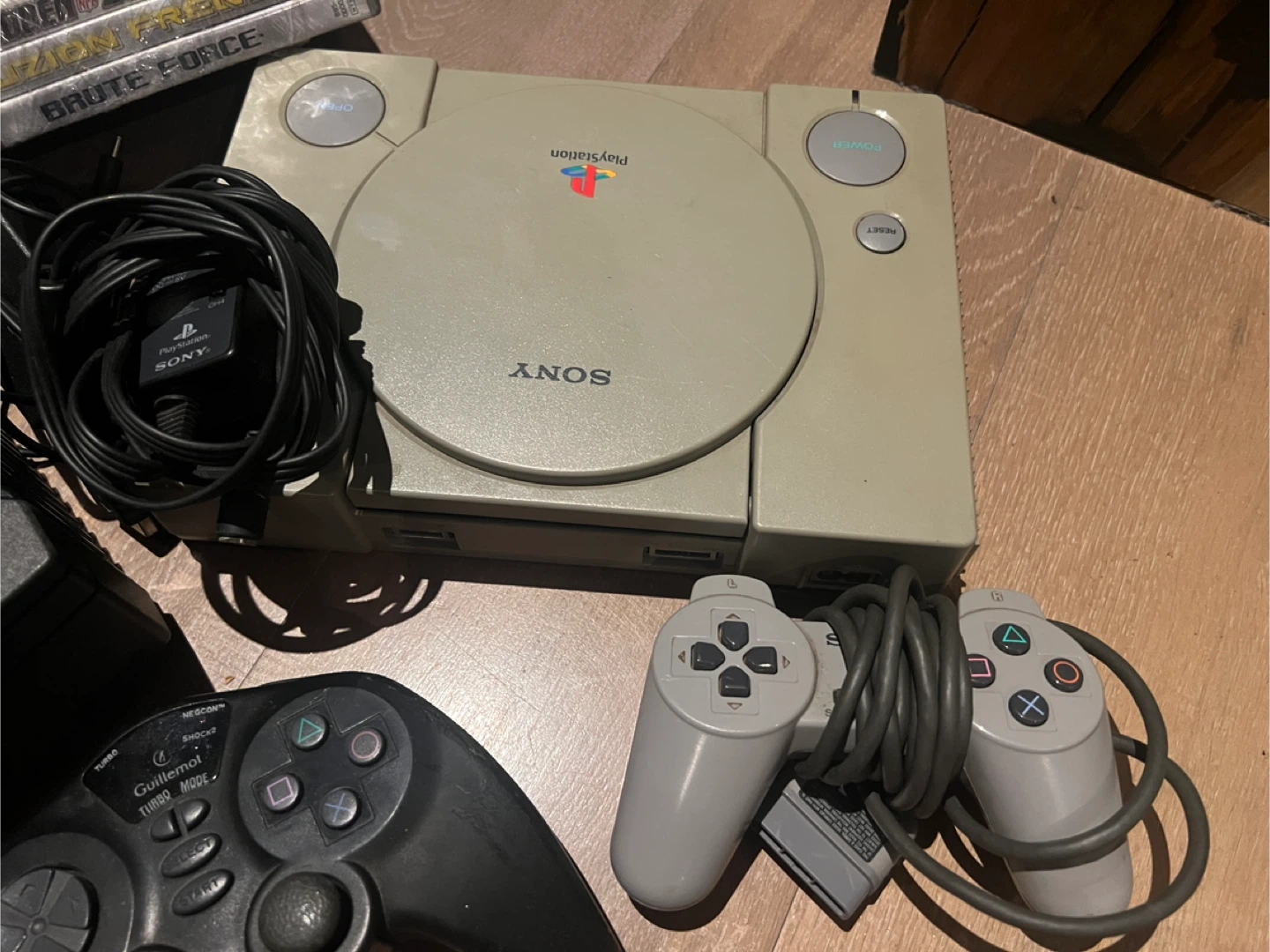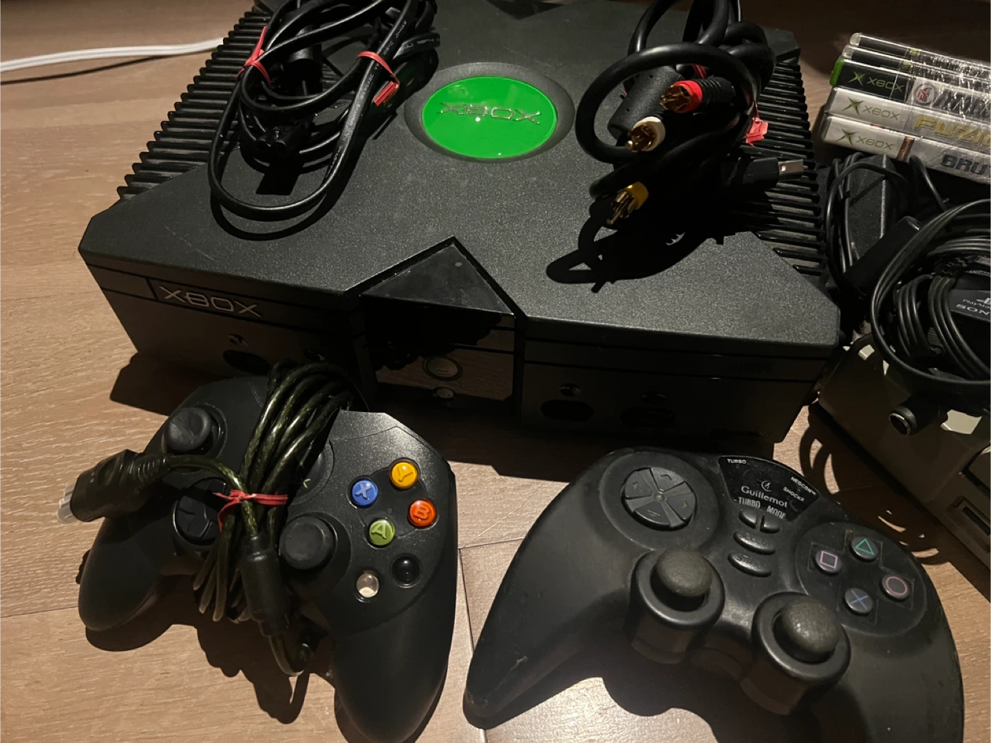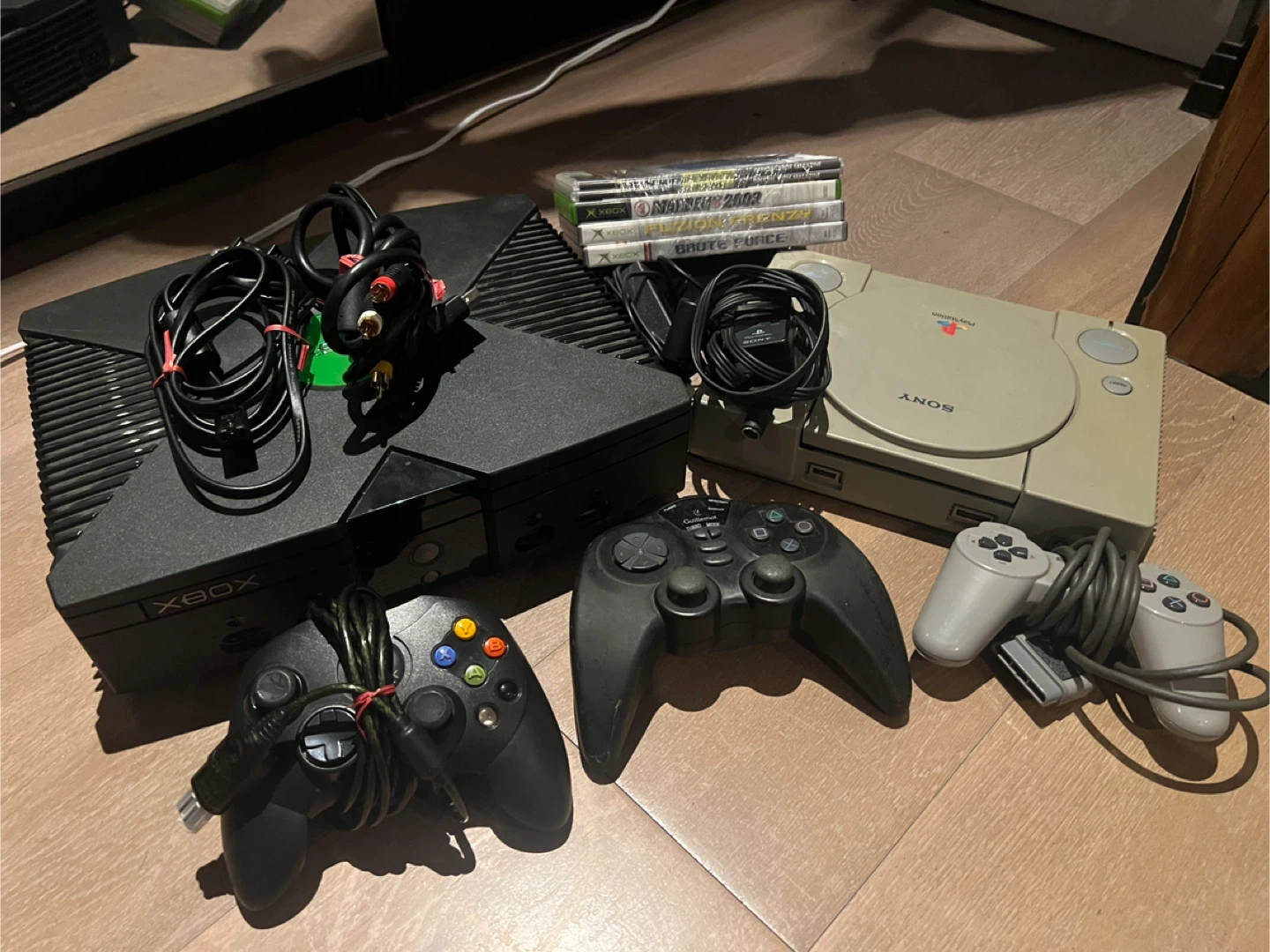 Selling a classic Xbox console and a Sony Playstation 1 console bundle together.