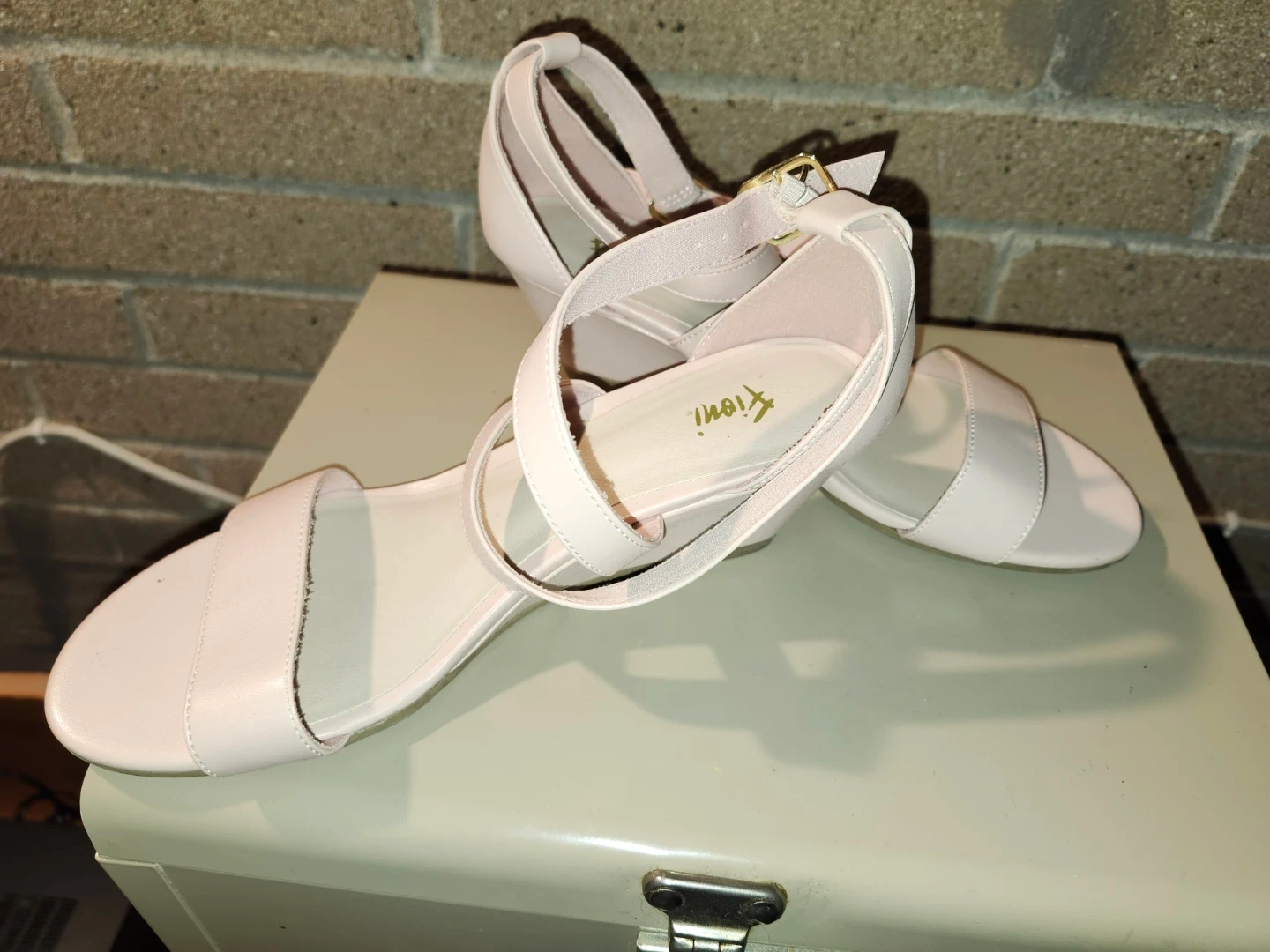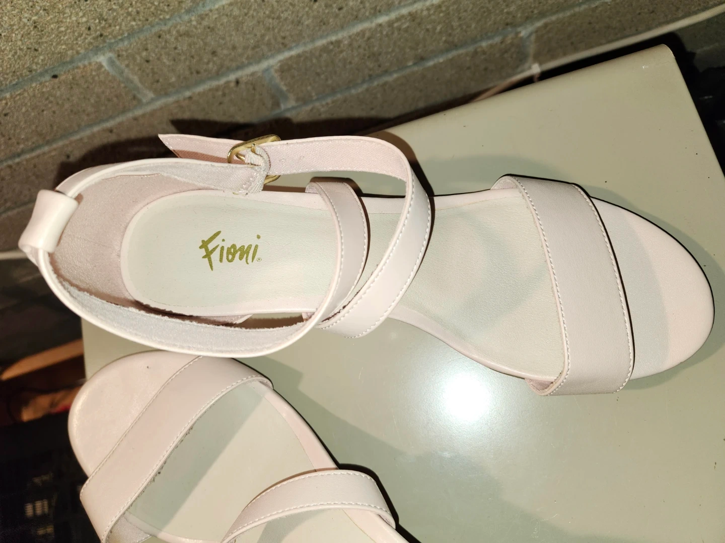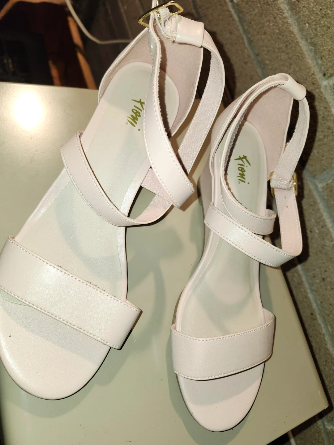These Fioni sandals are a lovely blush pink colour! They feature a wedge heel and delicate straps. Perfect for adding a touch of elegance to any outfit