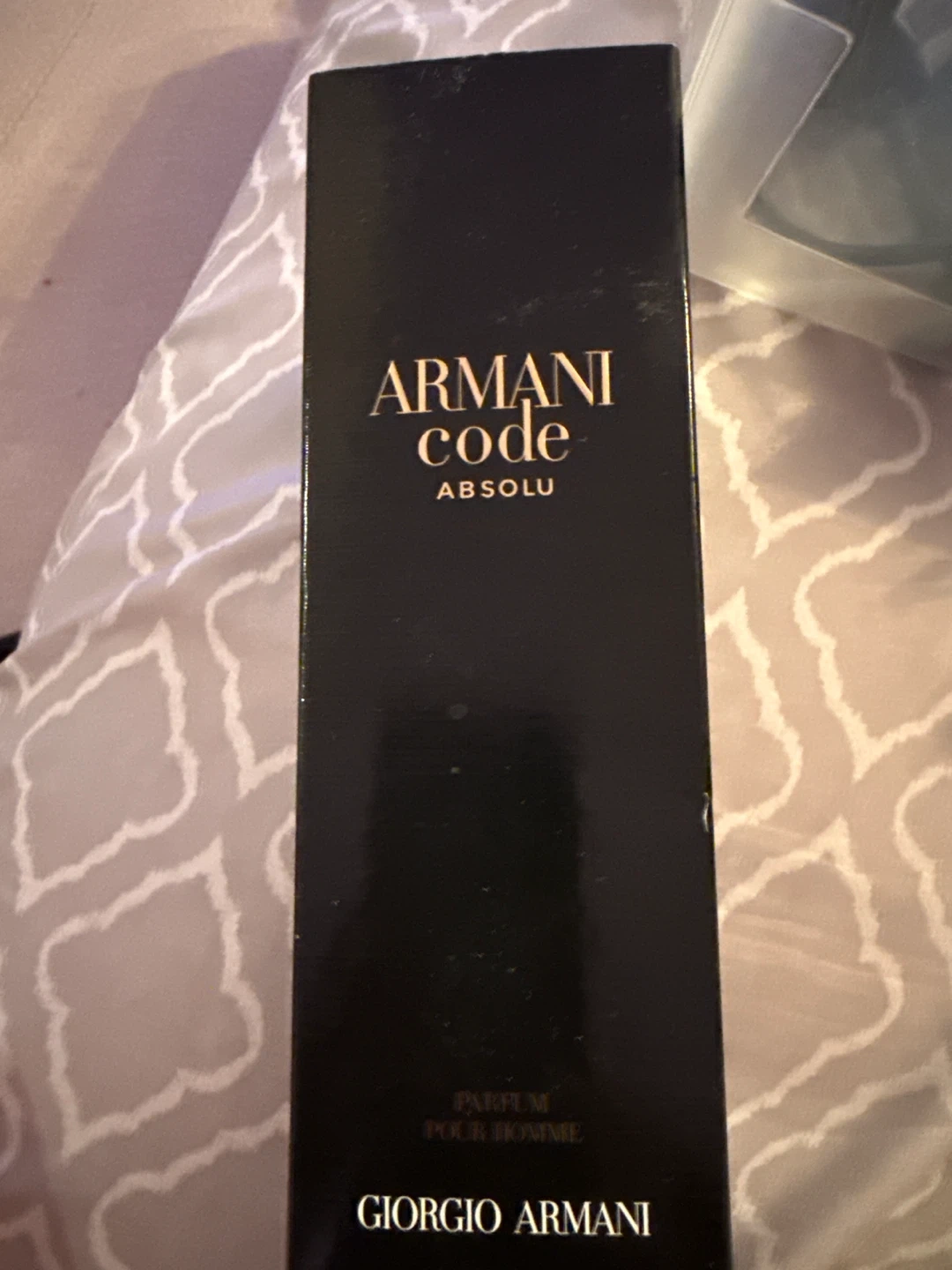 Selling a bottle of Armani Code Absolu Parfum. It's a parfum pour homme by Giorgio Armani. The box is included!