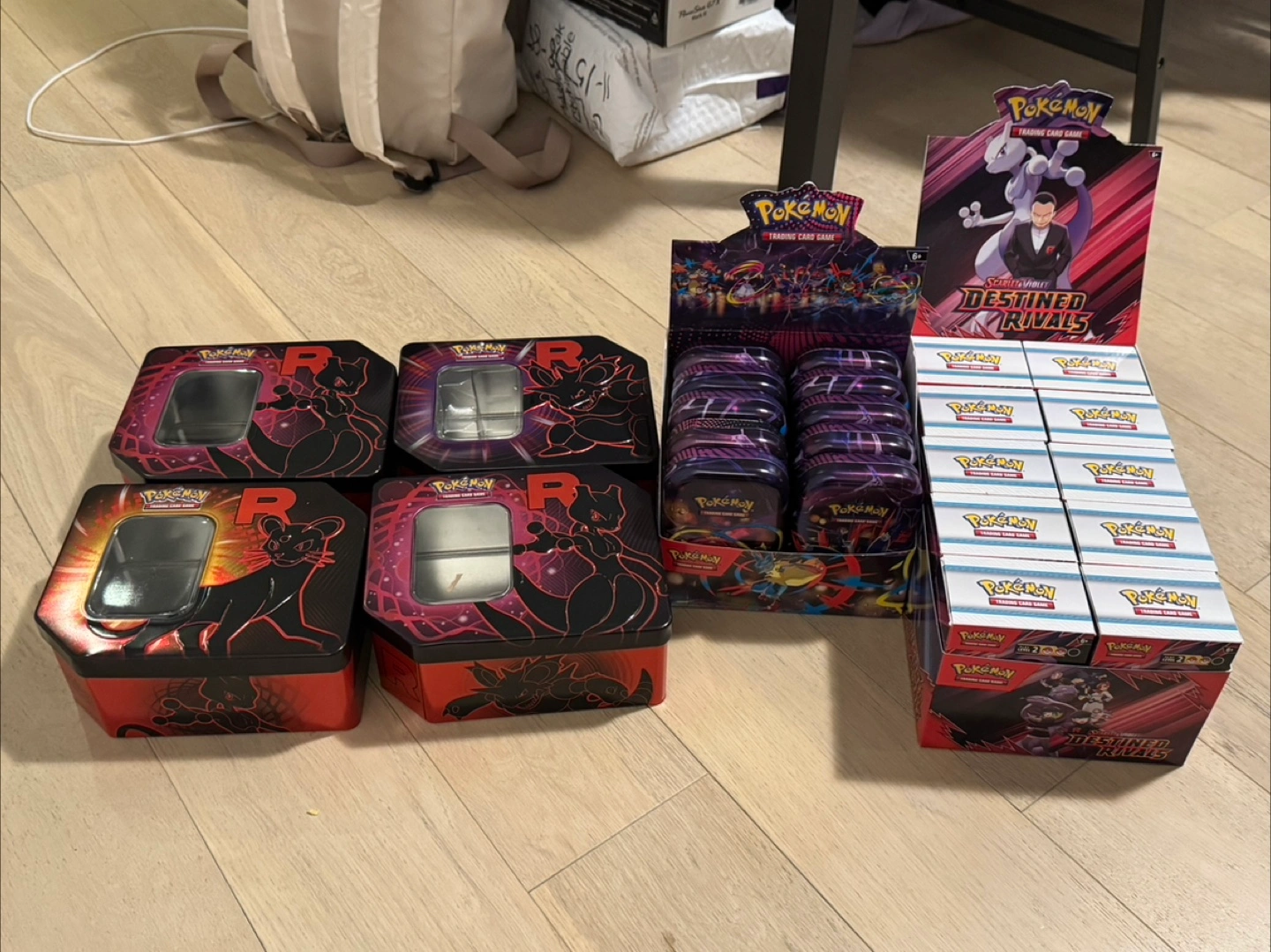 destined rivals build and battle display , team rocket tins, mini tins display( EMPTY packaging)