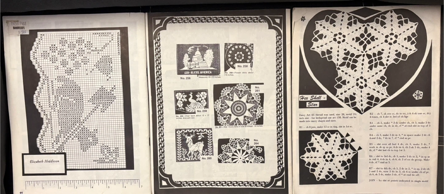 Volumes 15, 29, and 39, of crochet design books by Elizabeth Hiddleson. These collectible volumes are filled with patterns for various crochet projects, including edgings, tablecloths, and doilies. Perfect for crochet enthusiasts! Selling all three together.