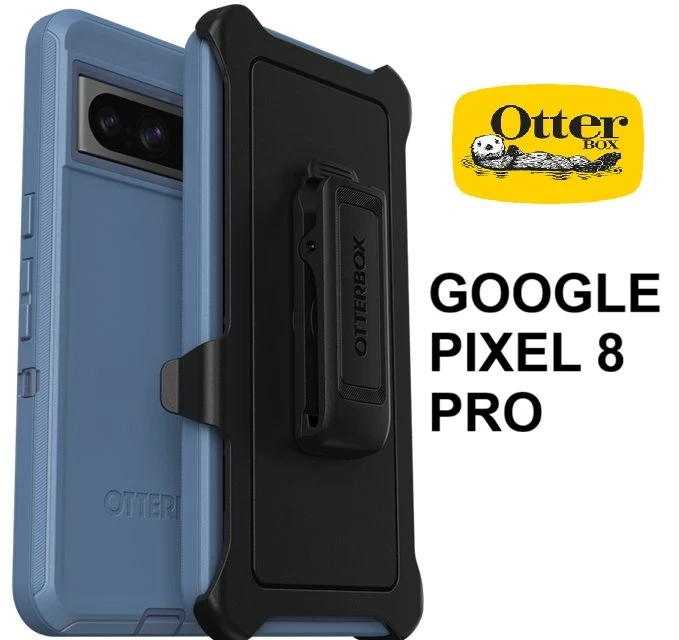 I'm selling a new blue Otterbox Defender Series case for the Google Pixel 8 Pro. It's rugged, durable, and comes with a holster clip kickstand. This case has multi-layer defense from the solid inner shell and resilient outer slipcover with port covers that block dirt, dust, and lint from getting into jacks and ports.