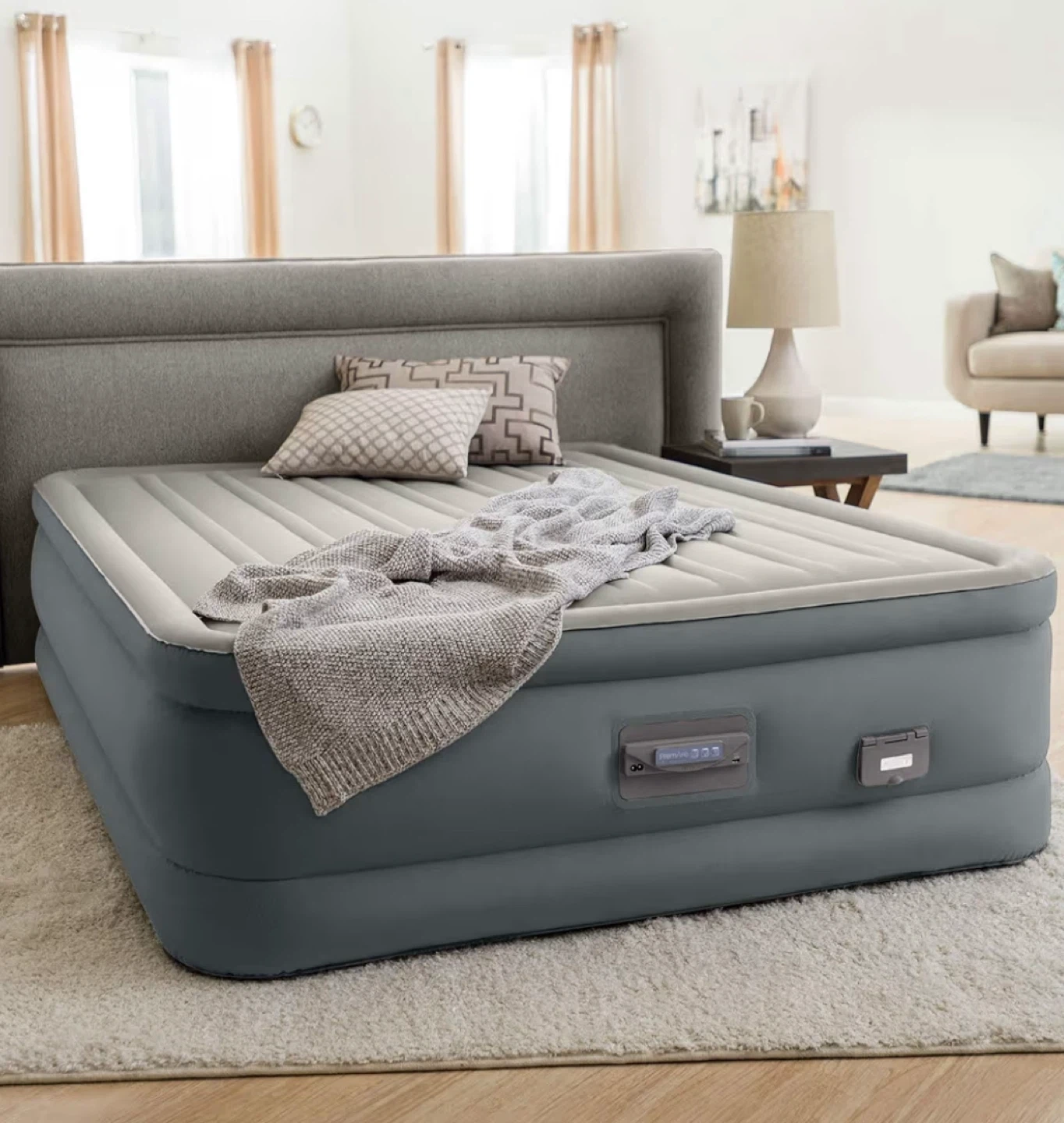 Selling a new Intex queen-size air mattress. With Built-in Electric Pump and Adjustable Firmness Control Panel and USB Port. It's never been used and ready for a new home! Perfect for guests or camping.