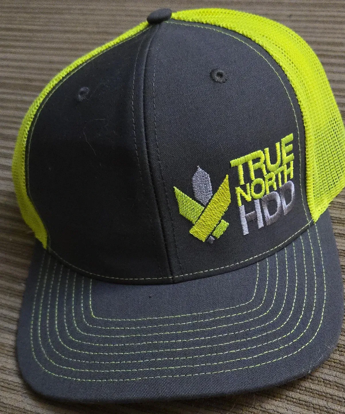 Selling a True North HDD trucker hat made by Richardson. It's a grey and neon yellow colour. The hat is in great condition and ready for a new owner!