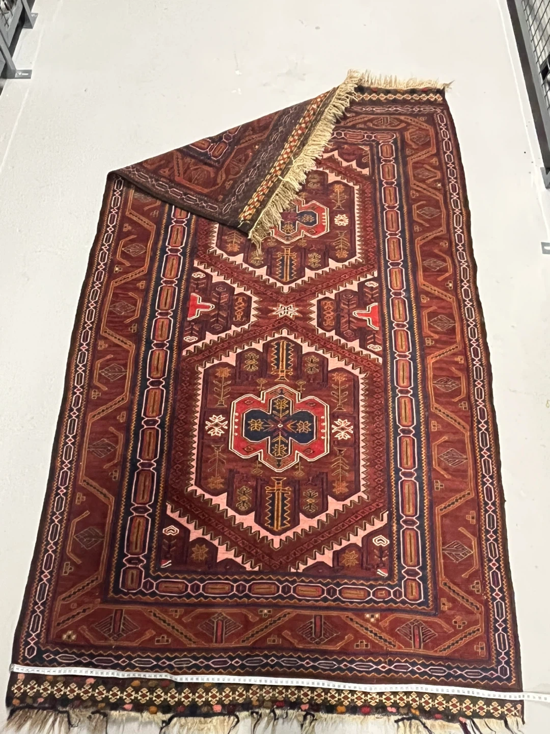 Selling a beautiful knotted Afghan tribal rug. It has a unique pattern and design. The rug measures 100 cm x 177 cm.
