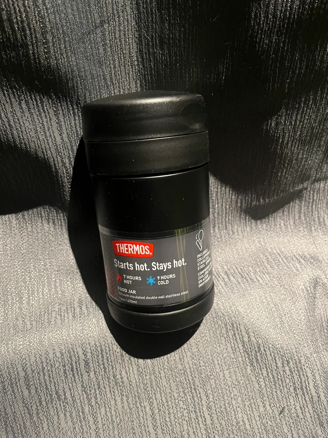 Selling a Thermos food jar! It keeps food hot for 7 hours and cold for 9 hours. It's vacuum insulated and made of double-wall stainless steel. The capacity is 470ml.