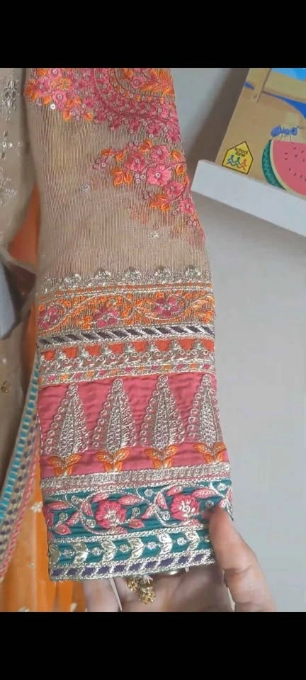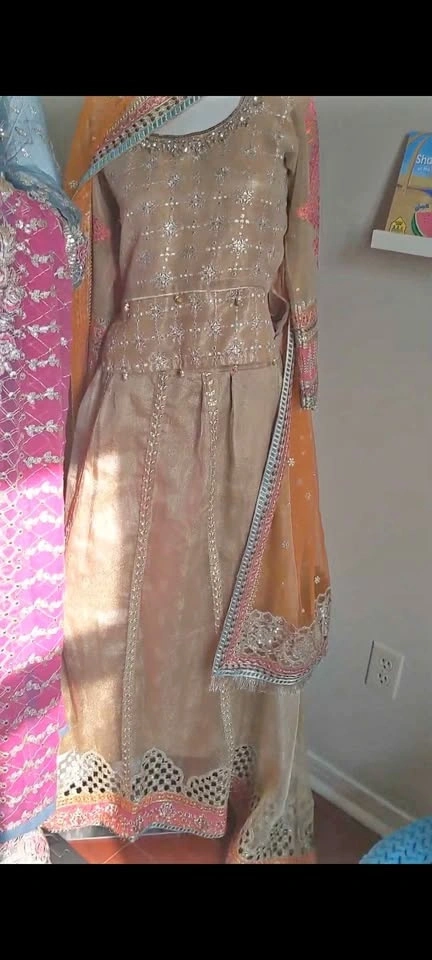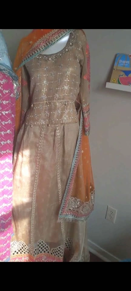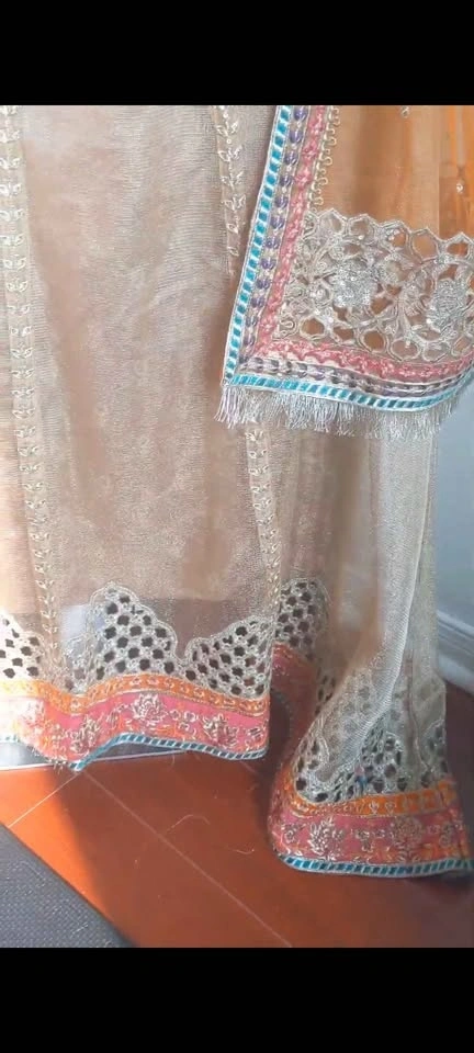 Intricate details, stunning lehenga with beautiful stonework on the neckline and cutwork on the dopatta.