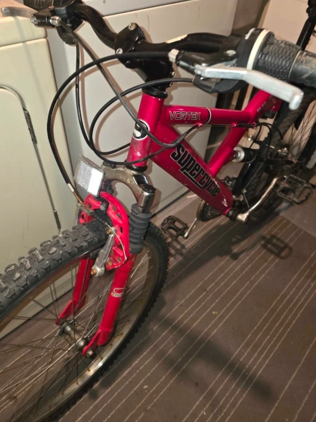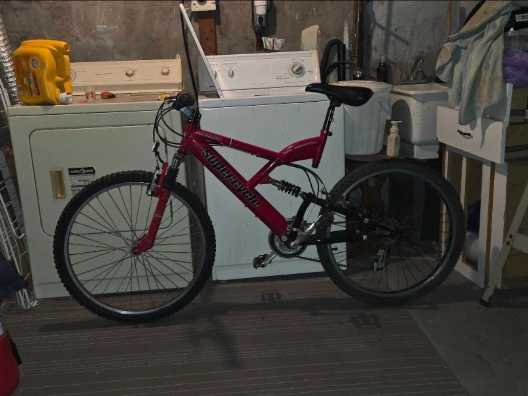 Trying to think out my collection, ready to ride supercycle vortex dual suspension mountain bike. Good for someone up to 5'10. Newer tires, asking $125 obo please check my other adds for more bikes!