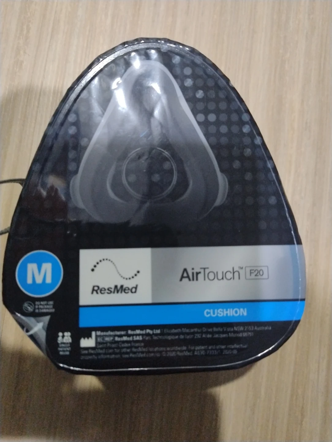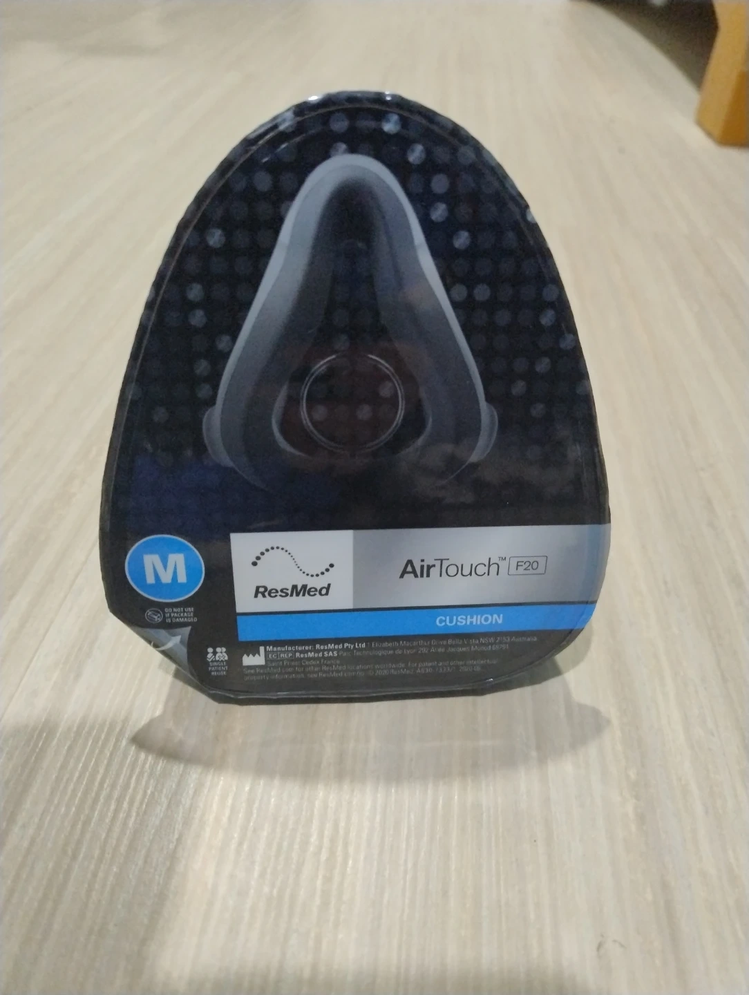 Cushion for ResMed AirTouch F20 mask (full face mask), size medium. This cushion provides a comfortable seal for CPAP therapy. It's designed for use with the ResMed AirTouch F20 mask frame.