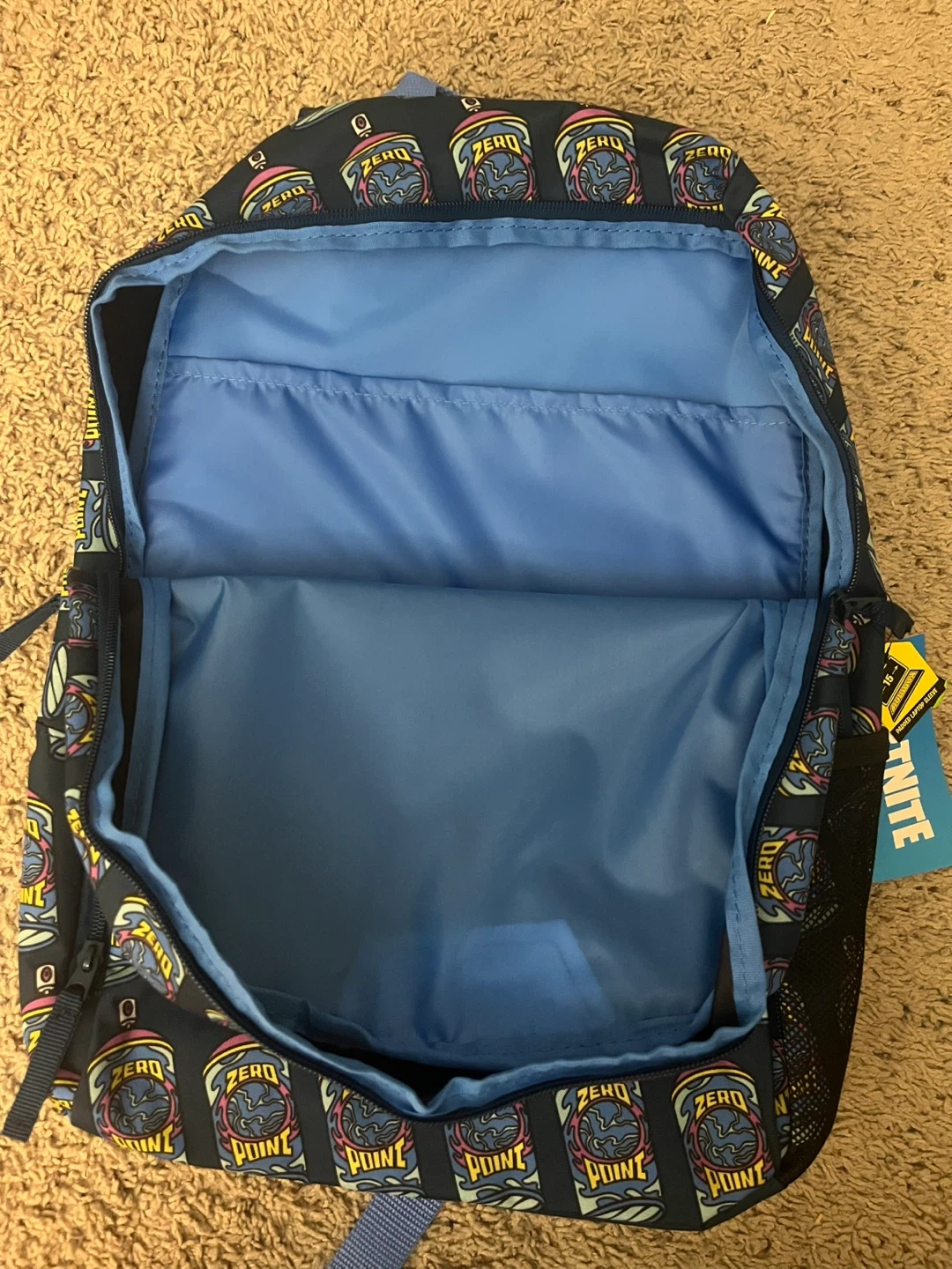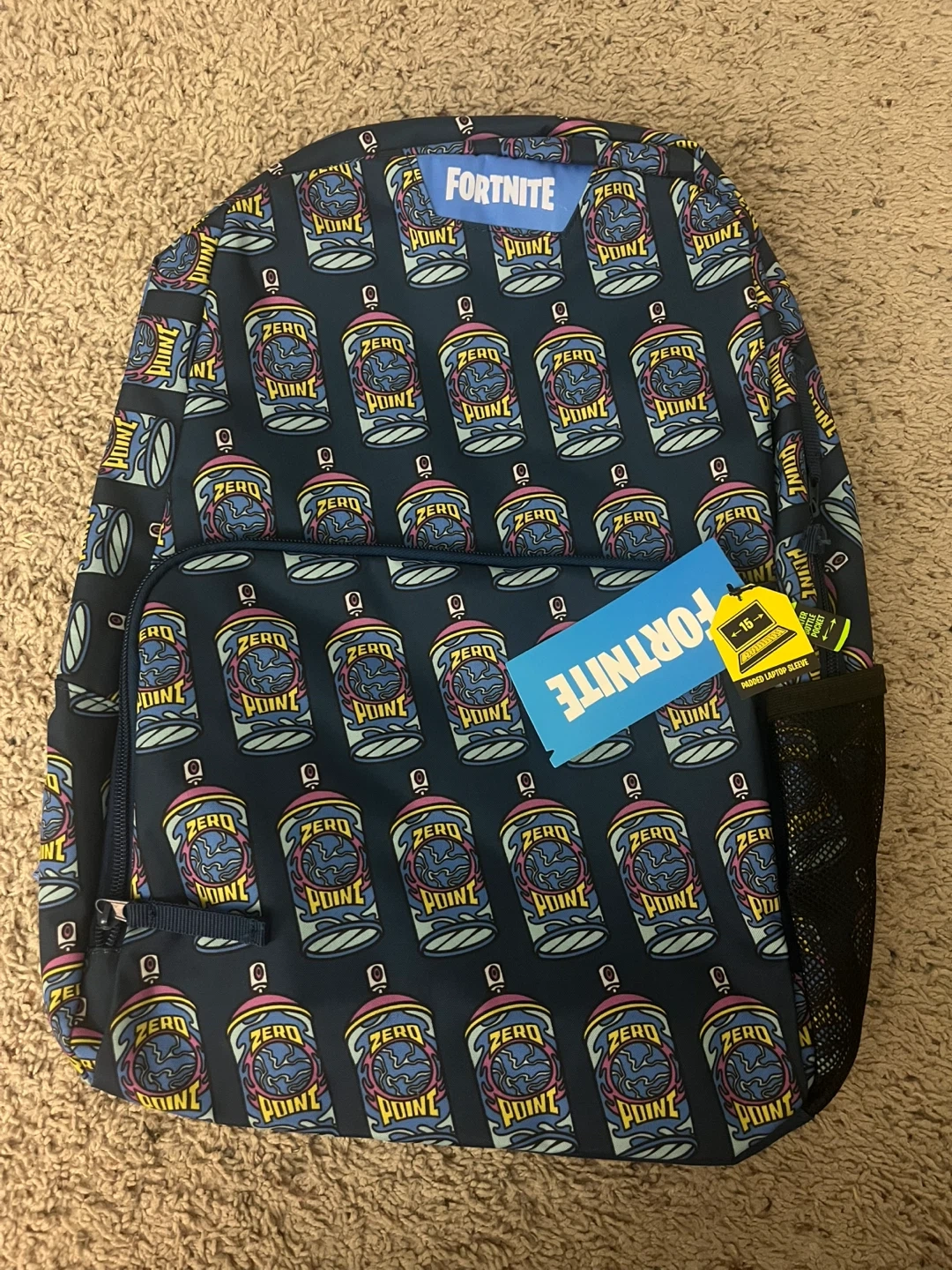 Here's a cool Fortnite backpack featuring a Zero Point design! It has a spacious interior with multiple compartments to keep everything organized. Perfect for school, travel, or just showing off your love for the game