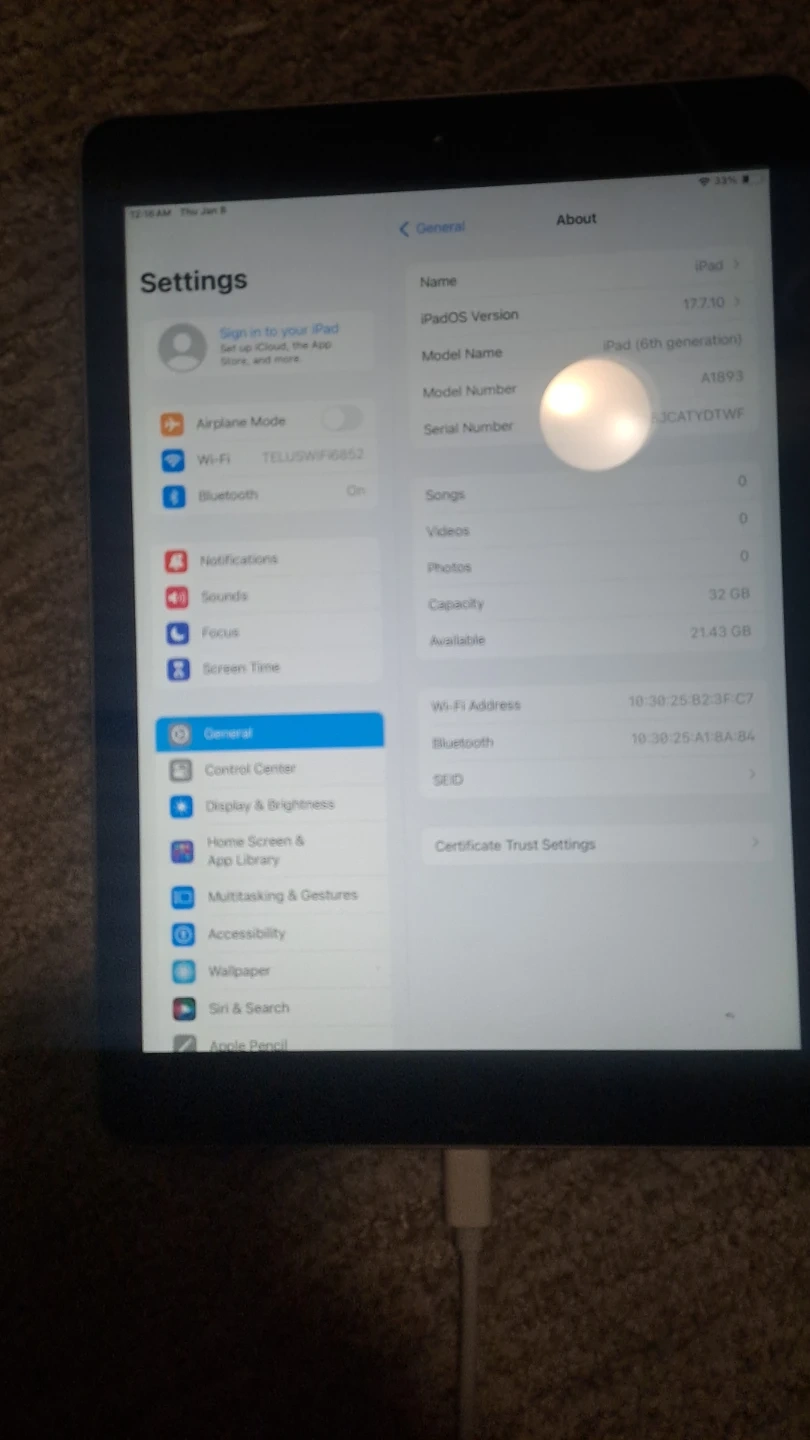 New Ipad 6 gen 9.7" 32GB battery health 100%