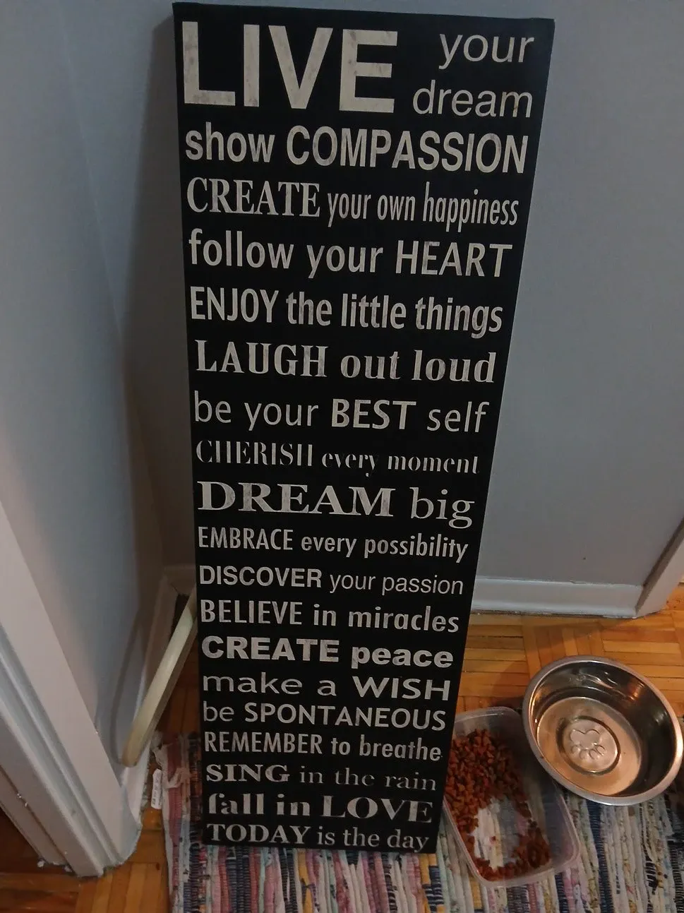 This wall decor features inspirational words to brighten up any room. It includes phrases like "LIVE your dream," "CREATE your own happiness," and "DREAM big". A great addition to your home or office space!