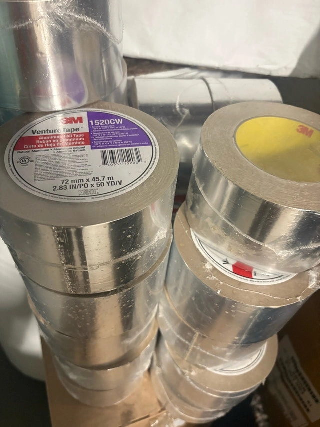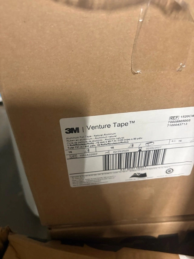 I'm selling a new roll of 3M Venture Tape 1520CW aluminum foil tape, measuring 72 mm x 45.7 m. This high-quality tape is perfect for various applications requiring a durable and heat-resistant seal.