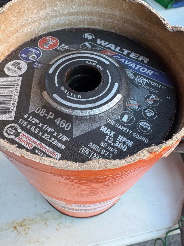 I am selling a Walter Xcavator Grinding Wheel. These are 4-1/2" x 1/4" x 7/8". Here are some additional specifications: