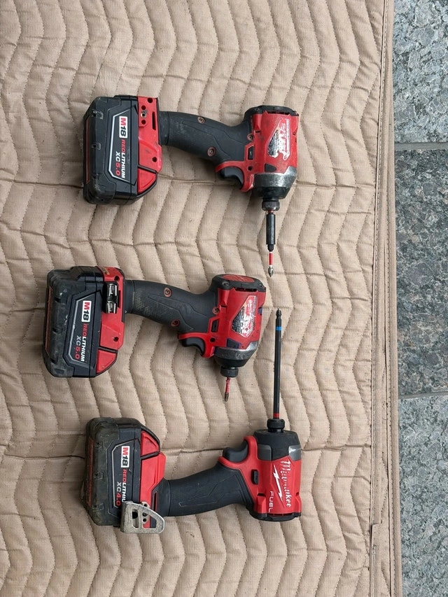 Selling a set of three used Milwaukee M18 cordless impact drivers, known for their power and reliability. These tools have been well-maintained and are ready to tackle any job. Perfect for both professionals and DIY enthusiasts, they offer excellent performance and durability. The M18 series is a staple in the industry, providing the torque and speed needed for various applications.