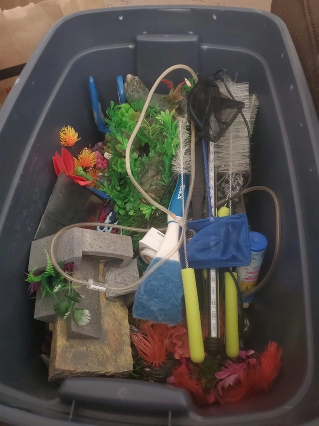 Fish tank with accessories and decorations
