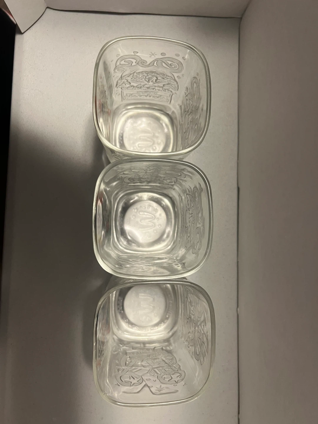 This set of 3 vintage drinking glasses features Mickey Mouse, and was created for Walt Disney World by McDonalds for the year 2000 Millennium. These square shaped glasses are in excellent condition with no chips, knicks, or cracks.