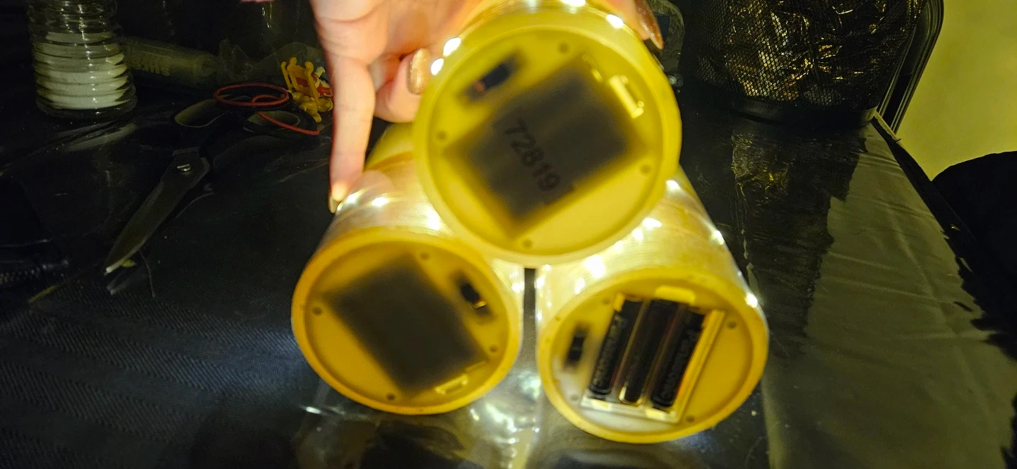 Selling a set of three LED candles, each wrapped with delicate string lights. They each require 3x AAA batteries to operate, which are easily replaceable (BATTERIES NOT INCLUDED). Sorry, one of the covers for the battery compartment is missing. PU Coppersmith/Ironwood Plaza.