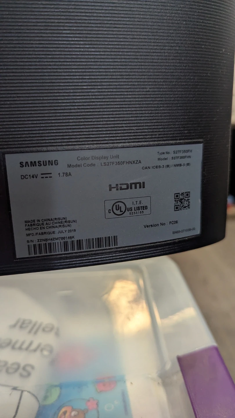 Selling a Samsung 27-inch monitor. The model number is S27F350FH.