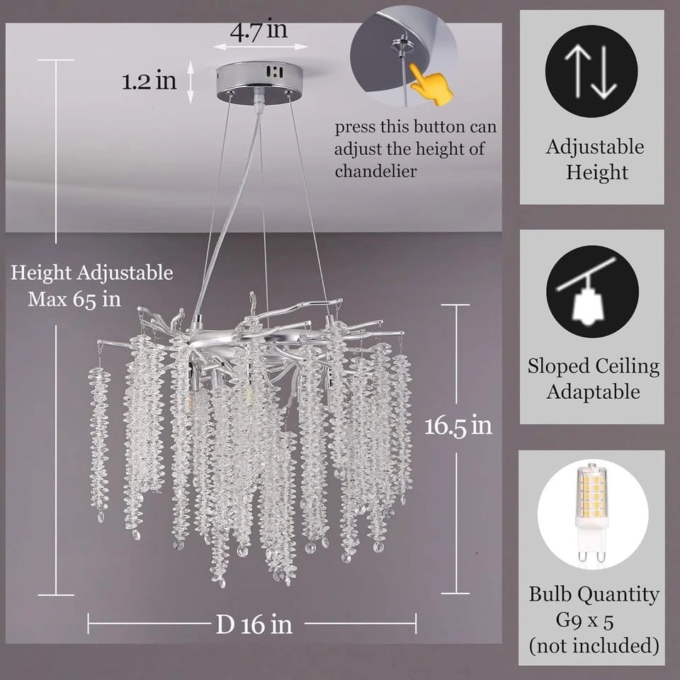Crystal Tree Branch Chandelier - Silver 16" - Brand New