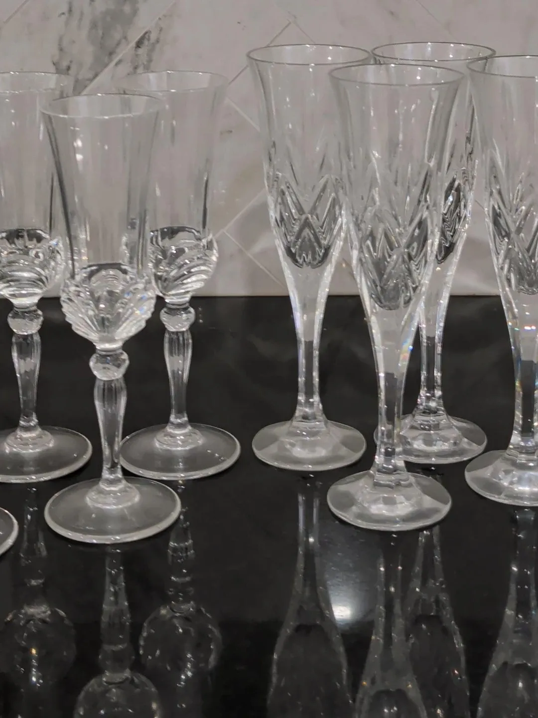 9pcs Selling a set of elegant crystal champagne flutes. They're in great condition and perfect for celebrations or adding a touch of class to any occasion