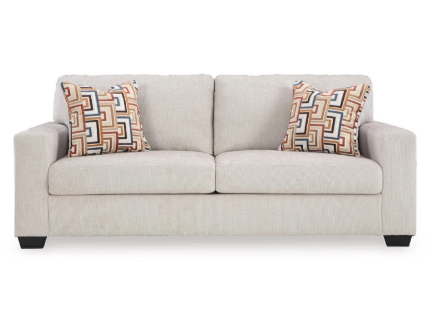 Beige Sofa with Two Throw Pillows