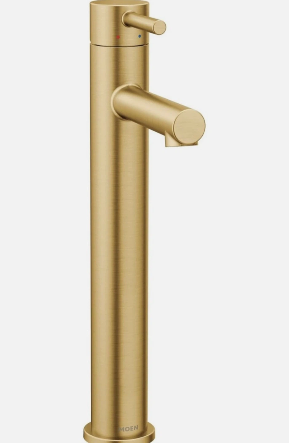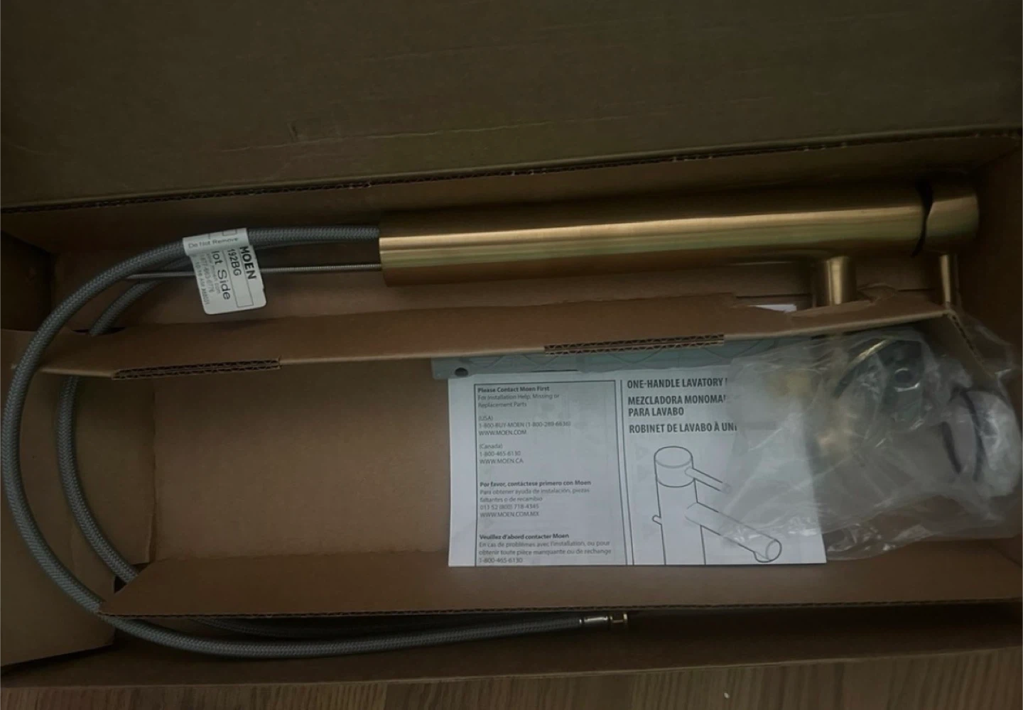 Selling a Moen Align one-handle lavatory faucet in brushed gold! This faucet is designed for a one-hole configuration. It comes with all the components in the original box