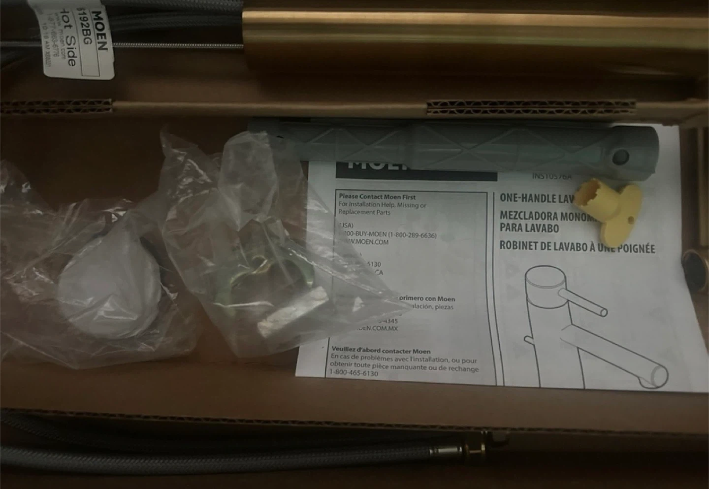 Selling a Moen Align one-handle lavatory faucet in brushed gold! This faucet is designed for a one-hole configuration. It comes with all the components in the original box