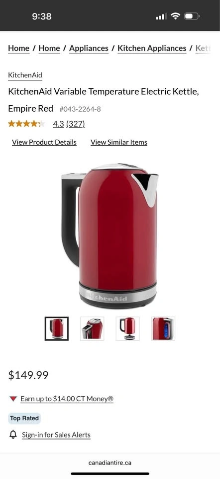 Buy & SellKitchenAid Variable Temperature Electric Kettle 1.7LKitchenAid Variable Temperature Electric Kettle 1.7L$40Used kettle Pick up from VaughanWHERE TO MEETCheck LocationView MapSELLERverifiedXuru ZhouRural Vaughan822 reviews1 chats·1 favorites·34 viewsSEND CHAT TO SELLERHi Xuru Zhou! I’m interested in your listing.Hi Xuru Zhou! I’m interested in your listing.Get the Karrot app to chatSign In to chat